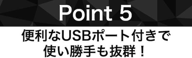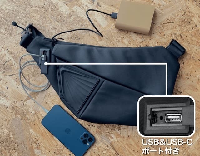 USB & USB-Cポート付きでメイン収納にあるケーブルとお手持ちのモバイルバッテリーなどを接続すればいつでもが充電可能。