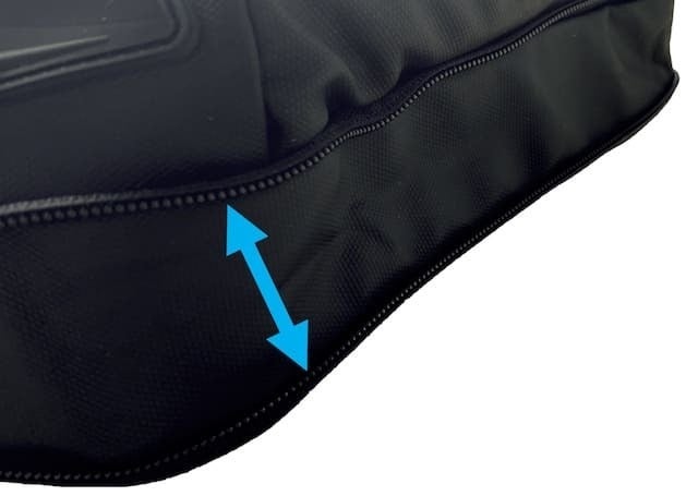 バッグ本体の底ファスナーを開くと5cmのマチが登場。