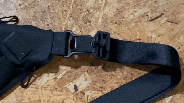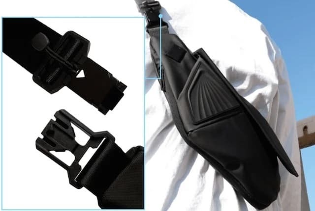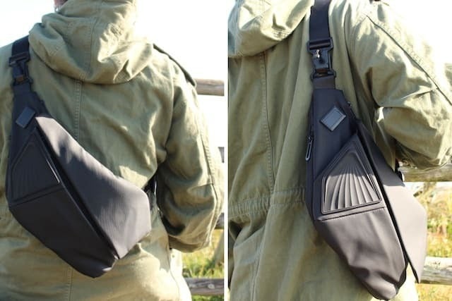 バック本体隣にバックルがあり、服の引っかかりや体に当たる違和感を排除した設計です。