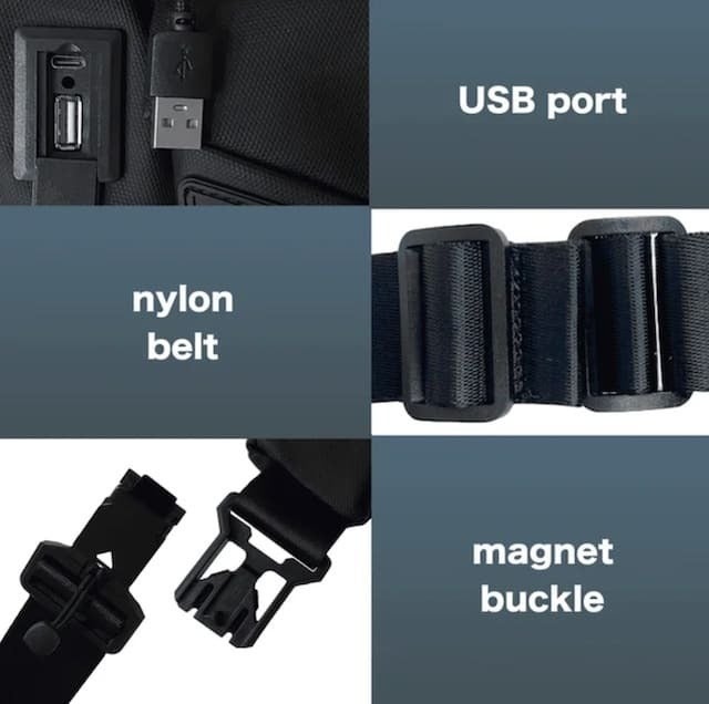 バックルはマグネット式を採用し紐を引っ張るだけで簡単に着脱できます。