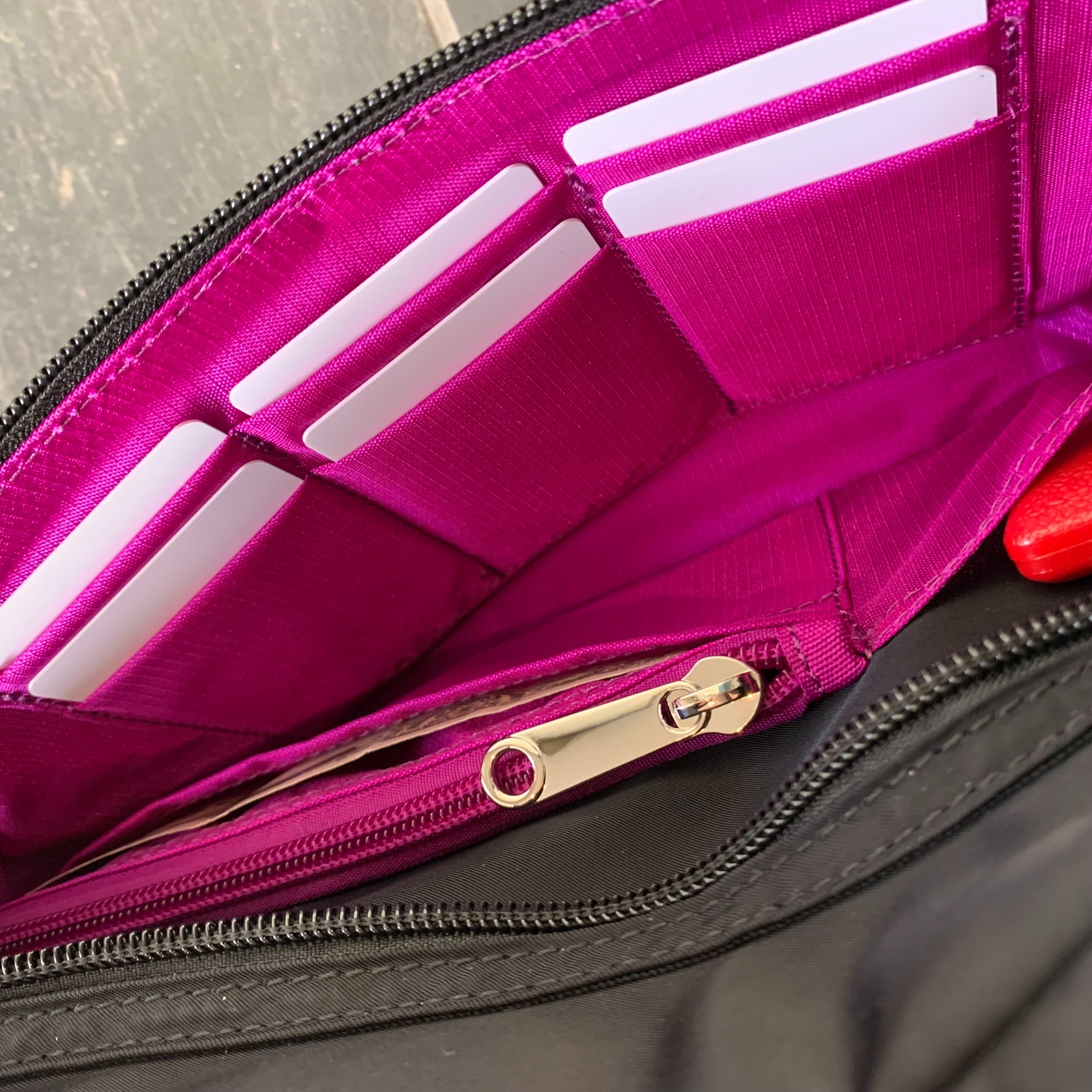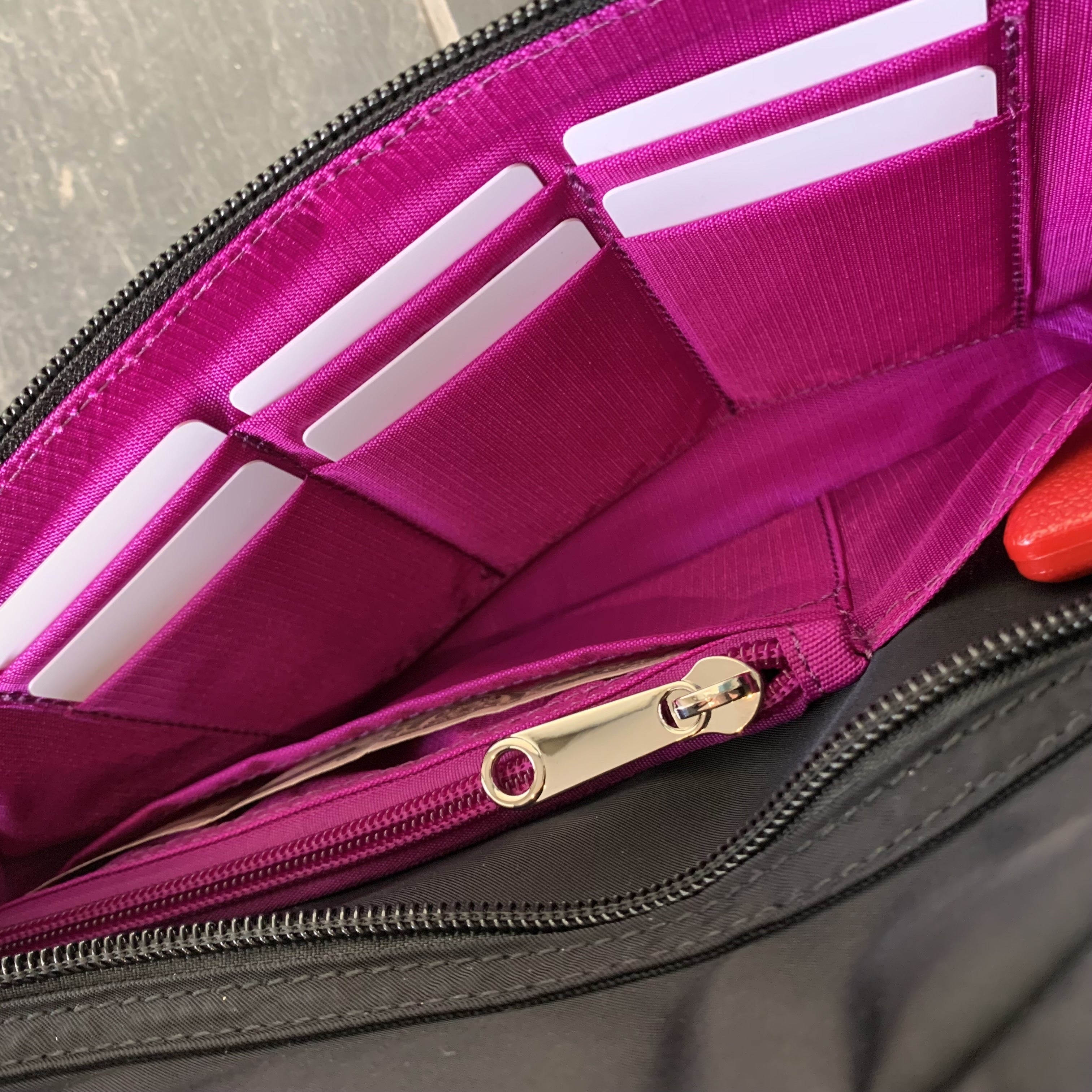 バッグのフロントポケットにお財布機能をつけました。
