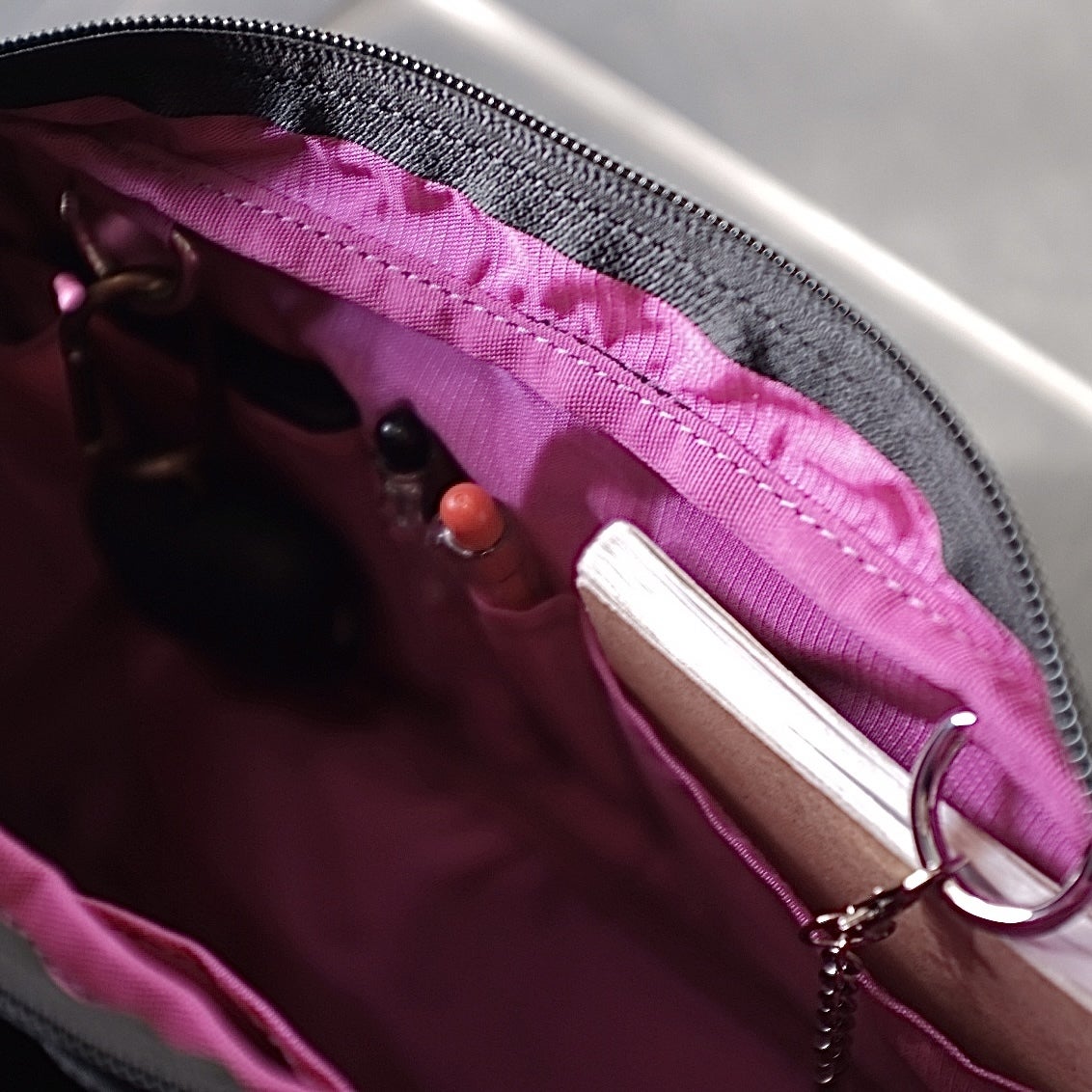 細かい物も中のポケットとDリングを使えば、すっきり収納できます!