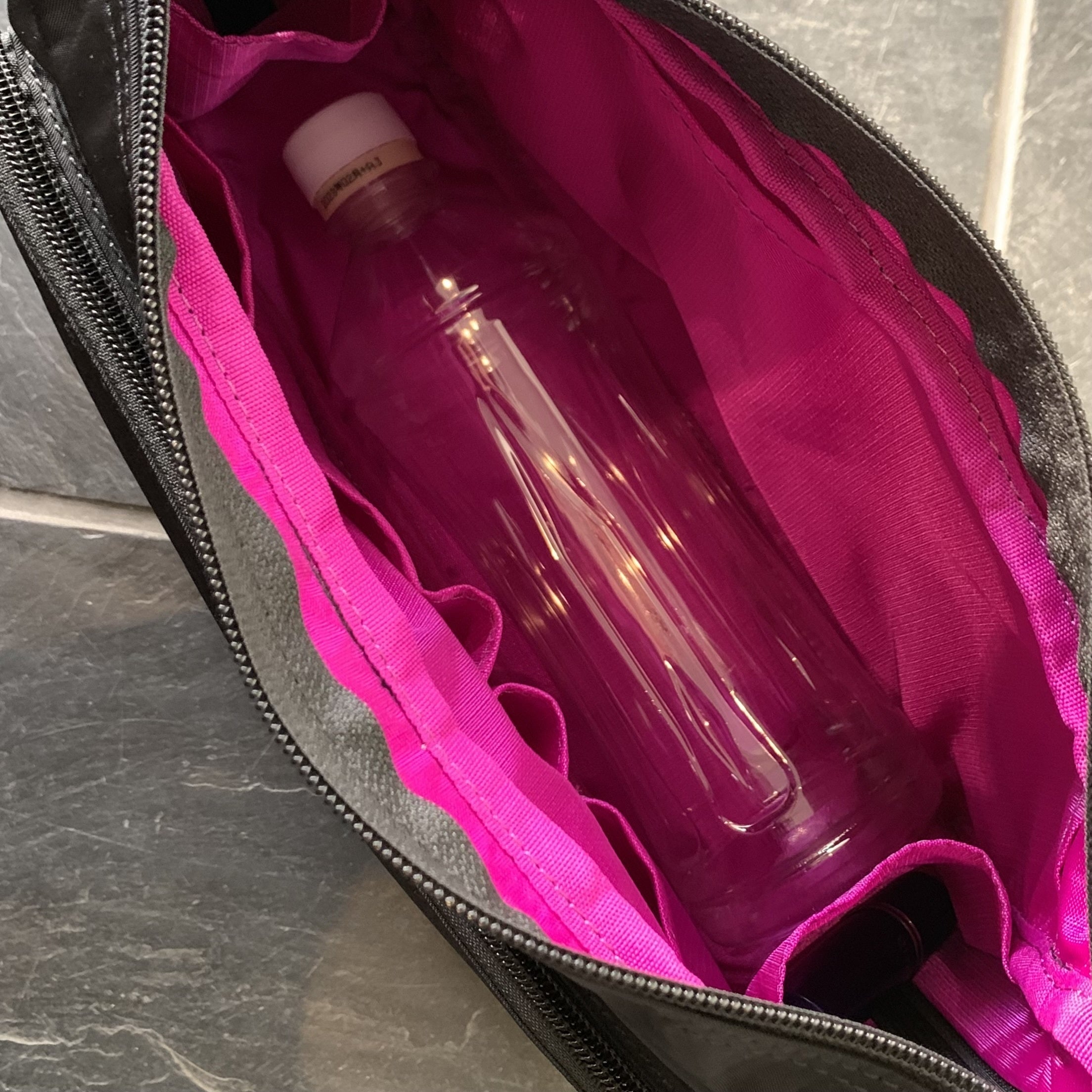 マチをしっかりとることで、見た目以上に容量があるサイズにしました! 600mlのペットボトルもすっぽり入るので、おでかけの際に水筒も持ち歩けます。