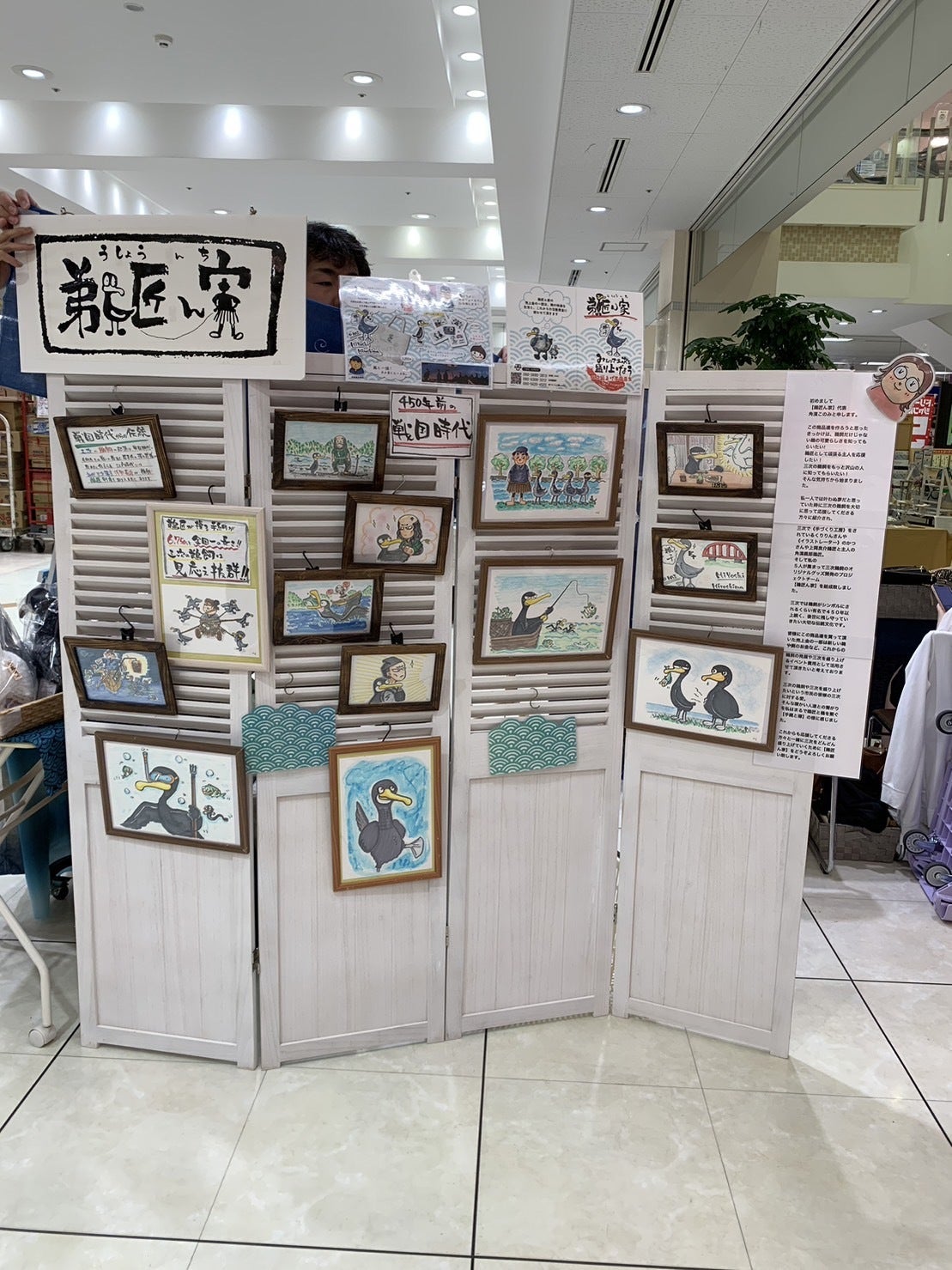 プロジェクトが立ち上がりグッズも少しずつですが制作をして積極的に地元のイベントやマルシェに参加をしながら三次の鵜飼を宣伝しつつ、イラストレーターかつさんが描いてくださった絵を個展としてグッズ販売の傍ら皆さまに見て頂いて、三次の鵜飼の歴史や特徴などイラストで説明をしています!親しみやすく分かりやすいと好評です。