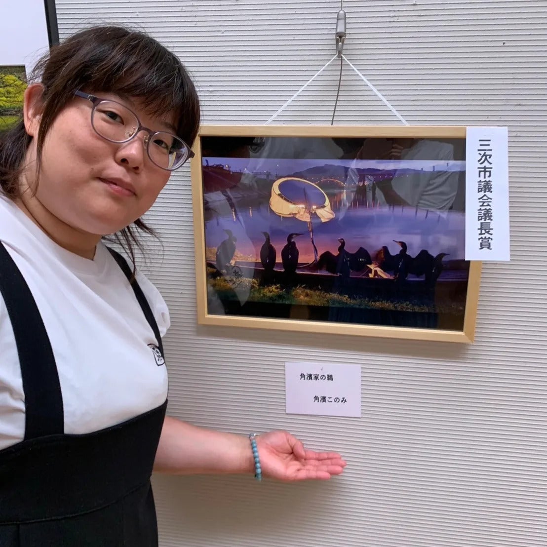 私もスマホなのですが、夕焼けと一緒に鵜〜ちゃん達を撮影した写真をお気に入りでしたので(皆さんにも見てもらえたら😚💕)という気持ちで先日三次で開催された美術展に出品しましたところ入賞しておりましたΣ(゚Д゚)✨