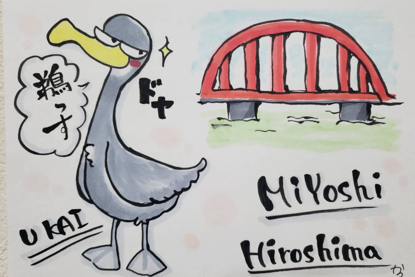 プロジェクト名を[鵜飼で三次を盛り上げ隊(仮)]から【鵜匠ん家«うしょうんち»】とチーム名を改め【鵜匠ん家専属】の《イラストレーターかつさん》から産み出されたキャラクター≪こにくら可愛い♡≫[鵜っすくん]が誕生しました!!