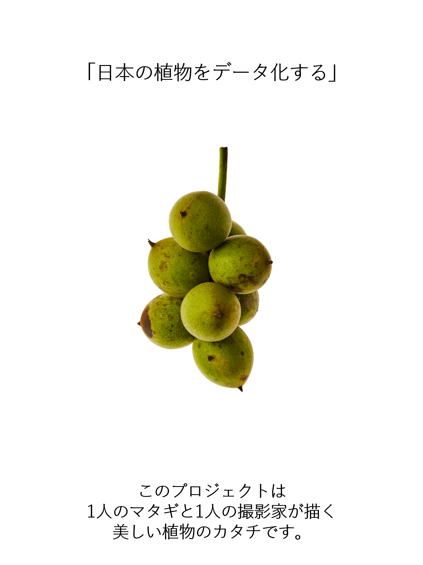 このプロジェクトは一人のマタギと撮影家がタッグを組み、日本の野山に自生する植物を撮影してデータ化し、そのデータ化した植物=iPlantsで商品を作り、新たな価値を提供することを目的としています。これは現実世界の植物と非現実世界の植物を分ける活動であり、市場経済の過度な需要に比例して貴重な植物資源が失われるという不幸な未来から脱却する挑戦でもあります。
