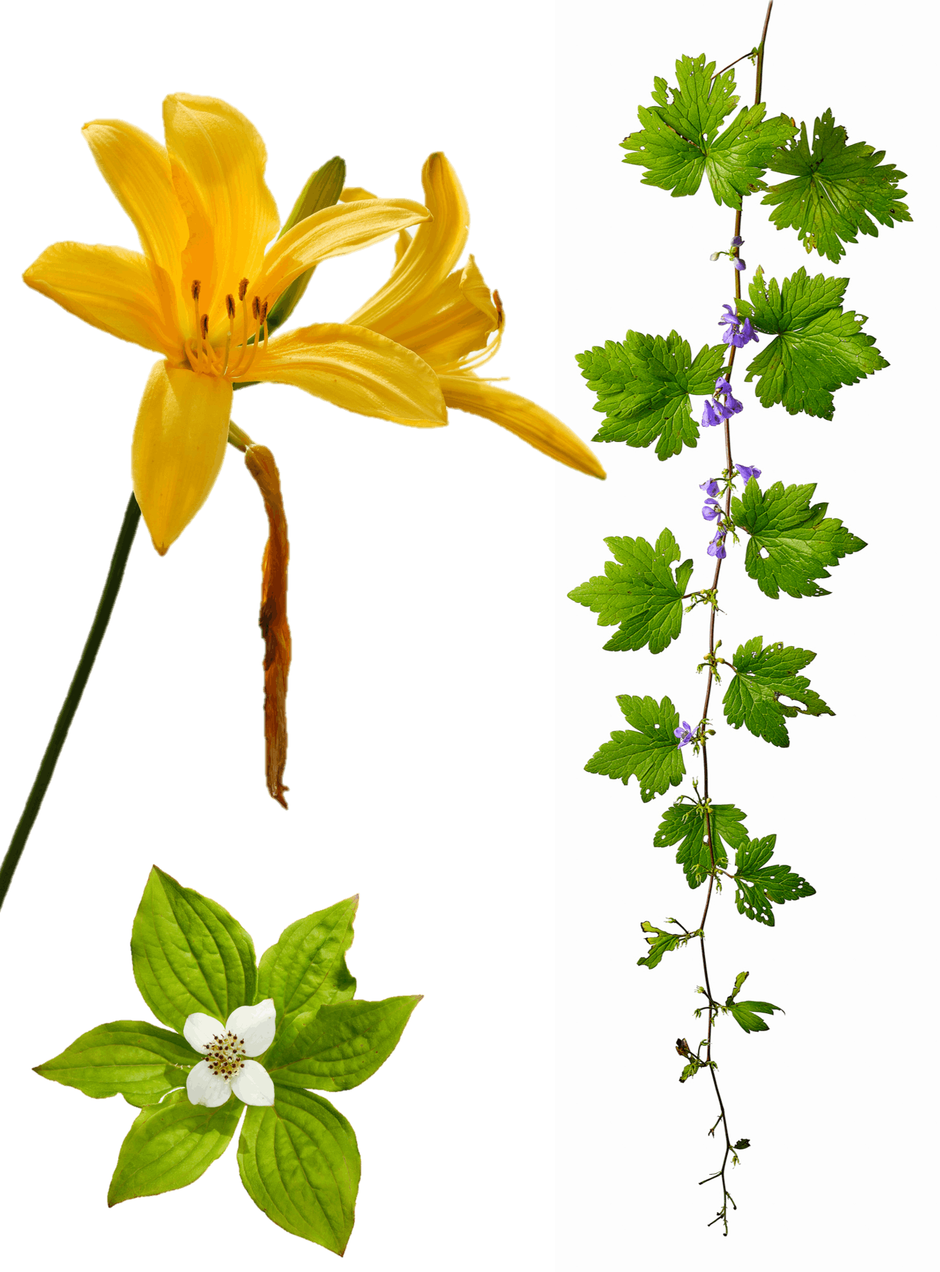 iPlantsを得るためには、まず野山へ出かけます。季節によってさまざまな表情を見せてくれる植物たち。その最も輝いている瞬間をiPlantsにするため撮影スタジオを現地で設営します。採取しても良い場所から植物体を切り取りスタジオへ持ち込みます。この時、どのような構図にするか決定しなくてはいけません。rPlantsとは異なり、iPlantsの場合は後からくるくると回してポーズを変更できないためです。撮影する範囲にも制限があります。植物によっては3分とたたず萎れてしまうものもいるのでスピード勝負の場面もあります。