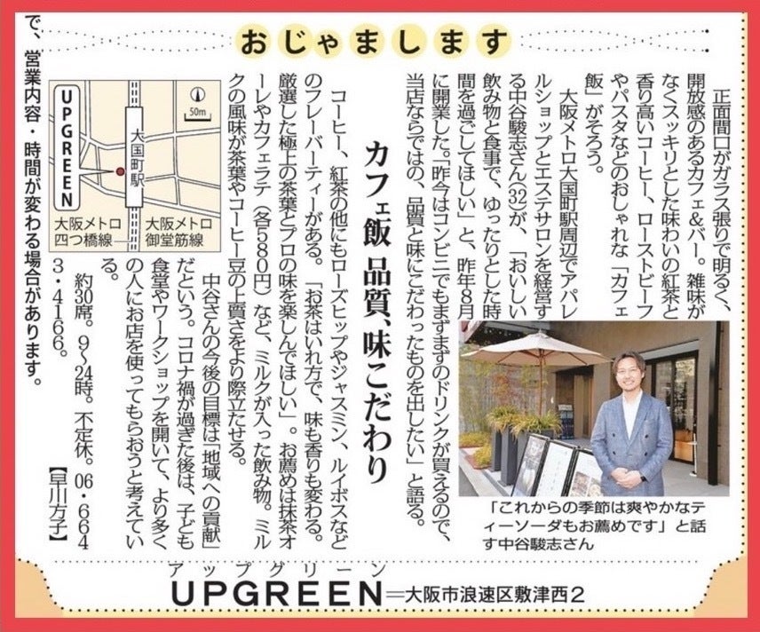 既に大阪大国町でUPGREENというカフェを運営しております。