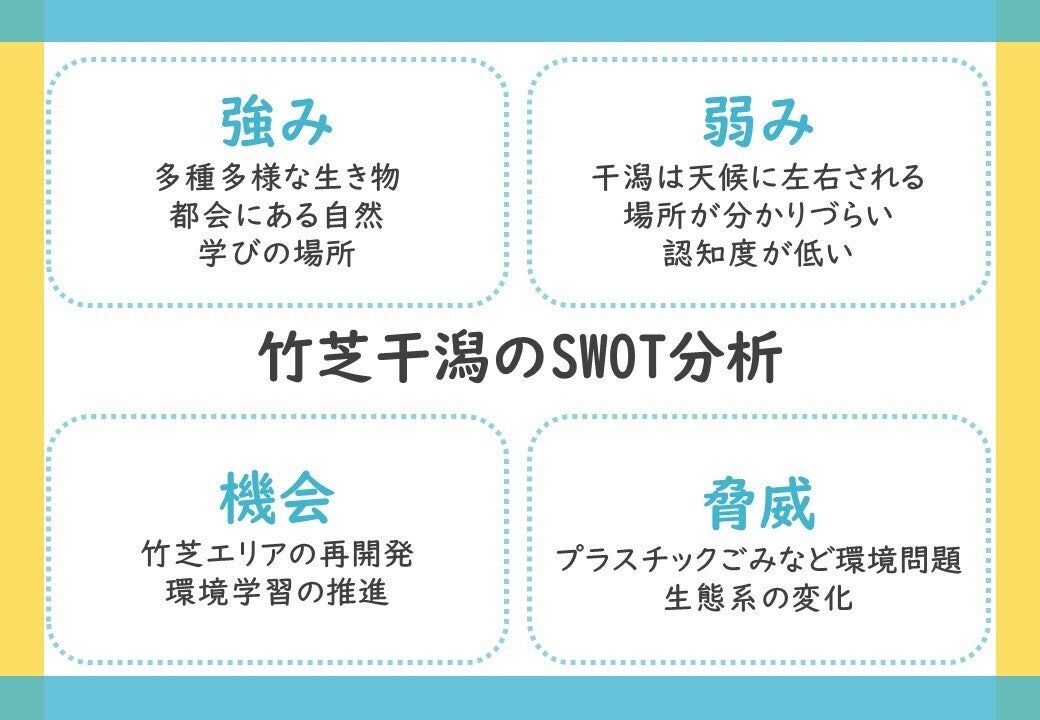 まずは私たちがフィールドにしている竹芝干潟について考えると、場所が分かりづらく認知度が低いことが課題だと思いました。私たちは干潟部があったから干潟について知ることができましたが、普段生活しているだけだとなかなか「干潟」という言葉を聞くことはありません。