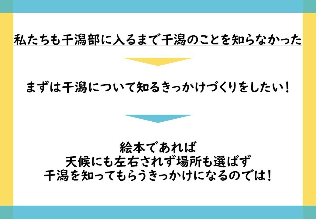 そこで、自分たちの得意なことをいかして干潟について興味を持つ”きっかけ”になるような”何か”を提供できないかと考えるようになりました。