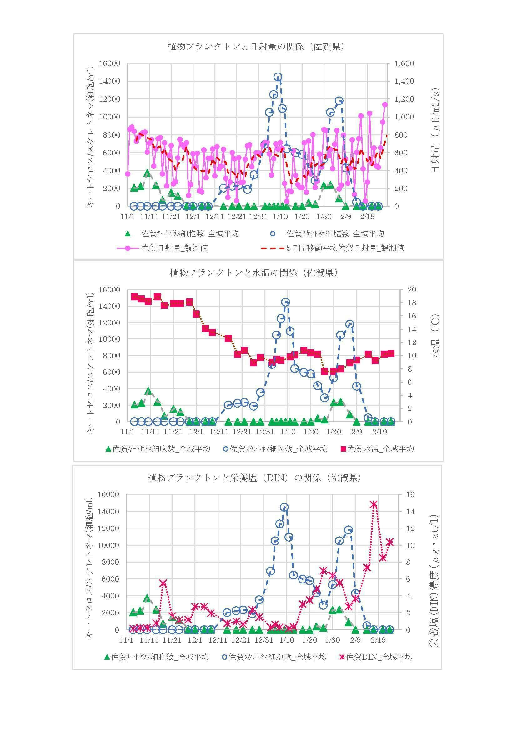 また、光強度、水温および栄養塩ともにマイナスの要素がない2月に植物プランクトンは大きく減少している。