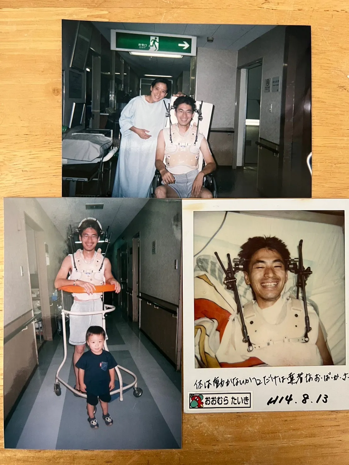 <事故当時の写真 四肢麻痺~車いす~歩行器>