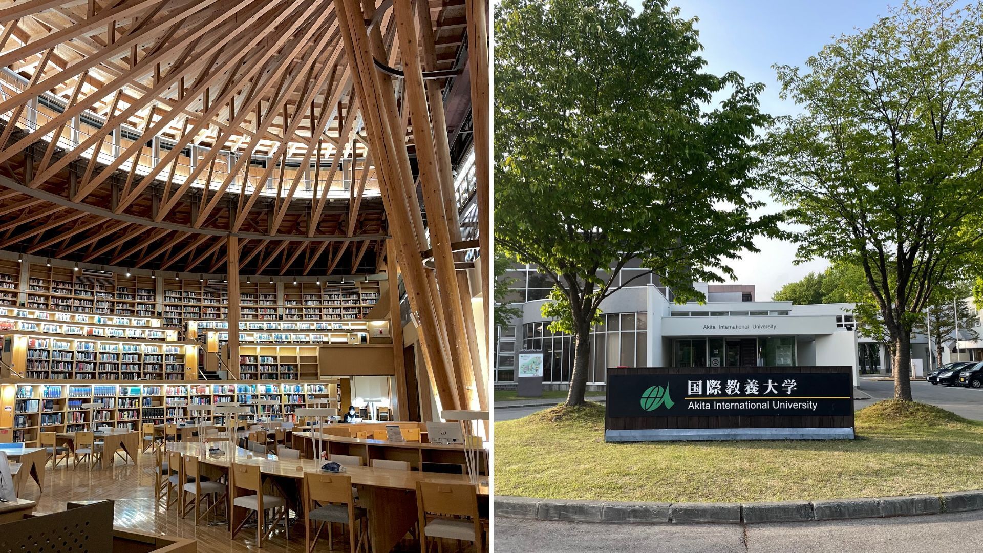 秋田市雄和に位置する国際教養大。キャンパスには日本全国、世界各地からさまざまな個性を持つ学生が集っています。少人数教育で英語で学ぶ授業を行っており、学生は「グローバルリーダー」になる力を養っています。現在は約140人留学生が在籍しており、キャンパスでは日本人学生と留学生がともに暮らし、学んでいます。