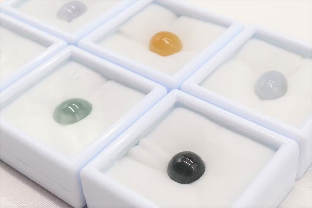 「STONE'S 16」と「天然本翡翠」をそれぞれルースケースに入れて、発送させていただきます。「STONE'S 16」はディスプレイ用としてもご使用いただけるよう、台座付きとなります。