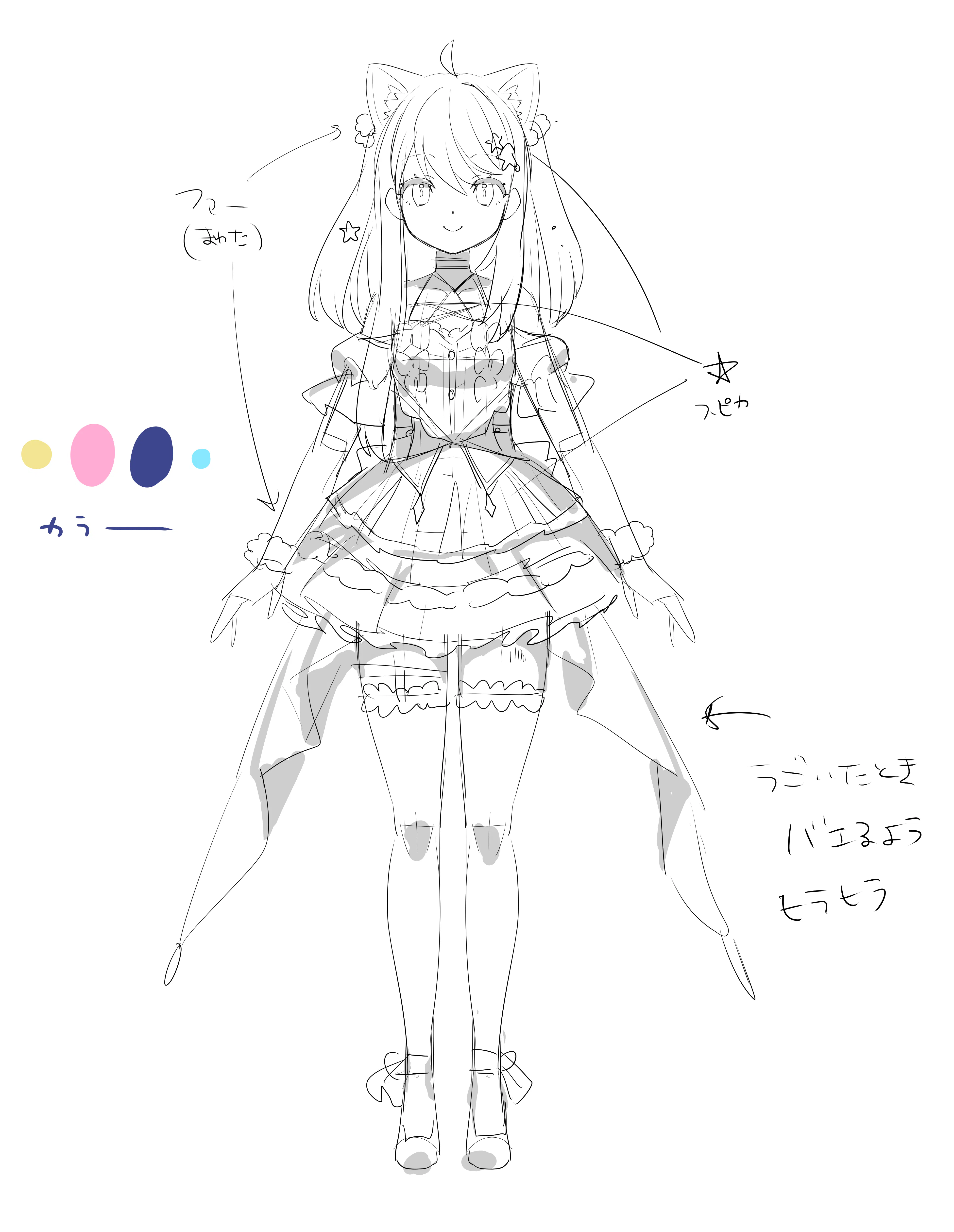 達成に先駆けて、デザイン・監修・キービジュアル等をご依頼している星河テフさまから、新3Dモデルのための新衣装のデザインラフが届きました!
