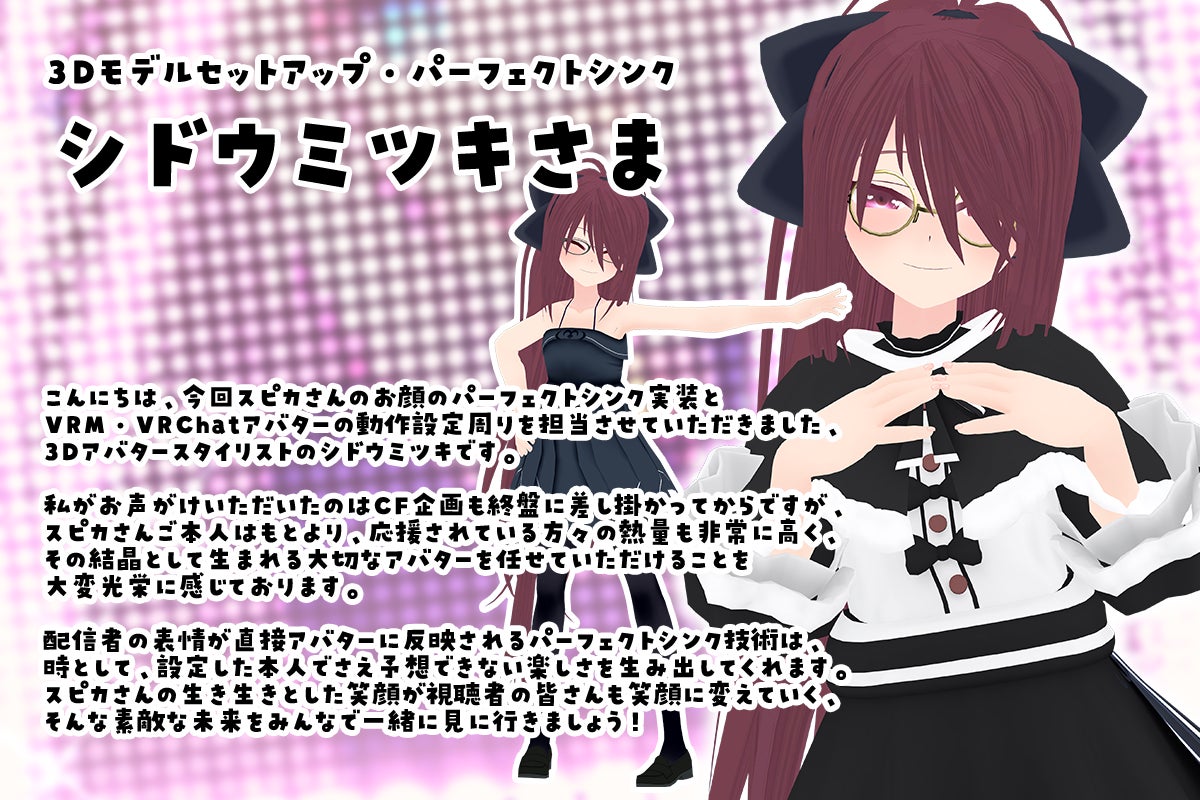 多くのVtuberさまをご担当していらっしゃる、確かな技術を持ったシドウミツキさまにお力添えいただけることになって、とても心強いです!