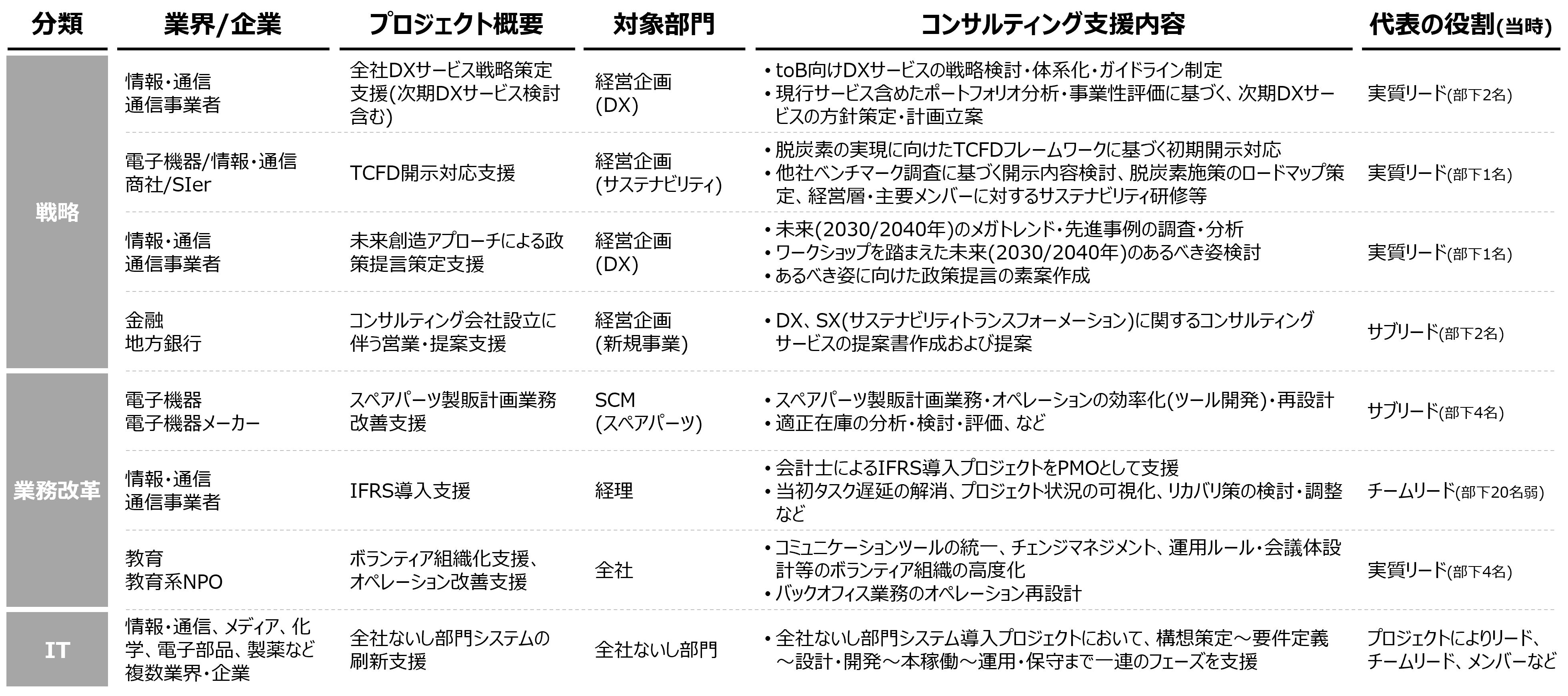 設立して間もないため社としての実績はありませんが、弊社代表のコンサルティング実績(抜粋)は以下の通りです。