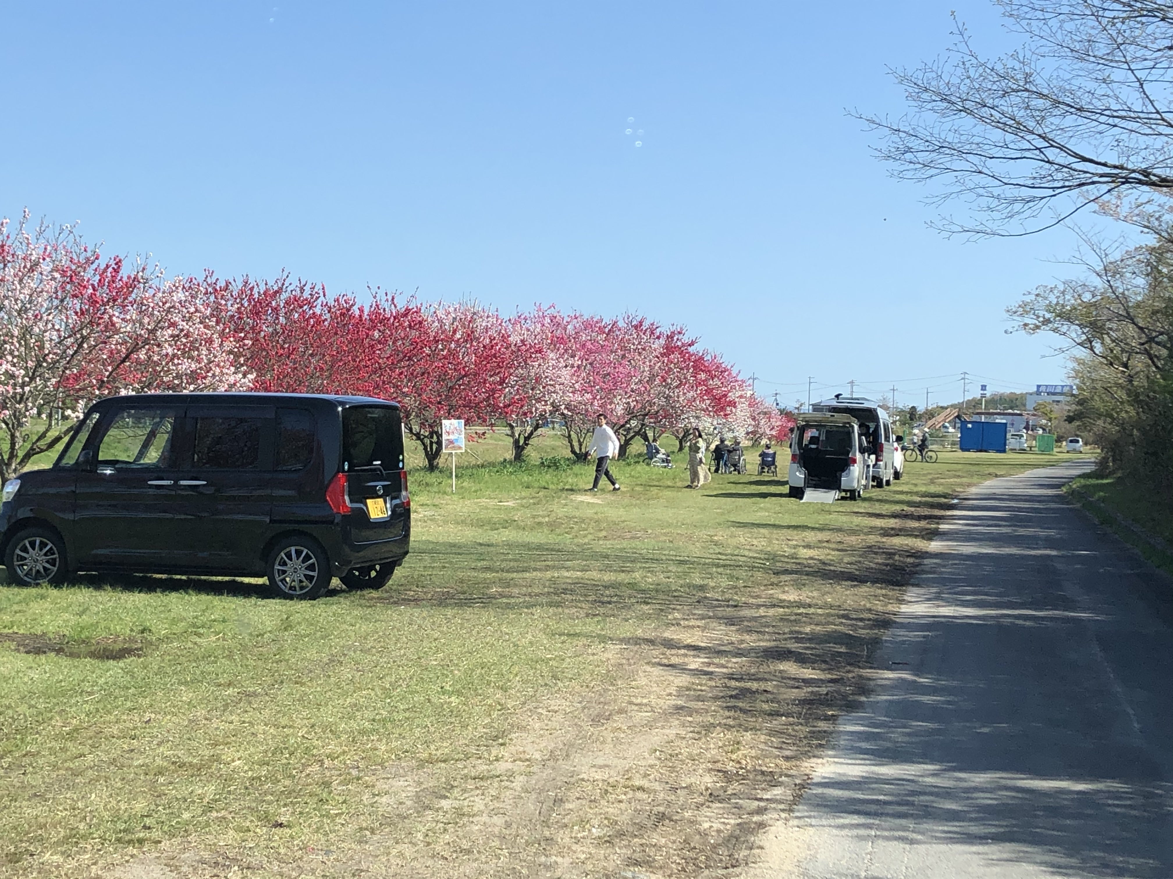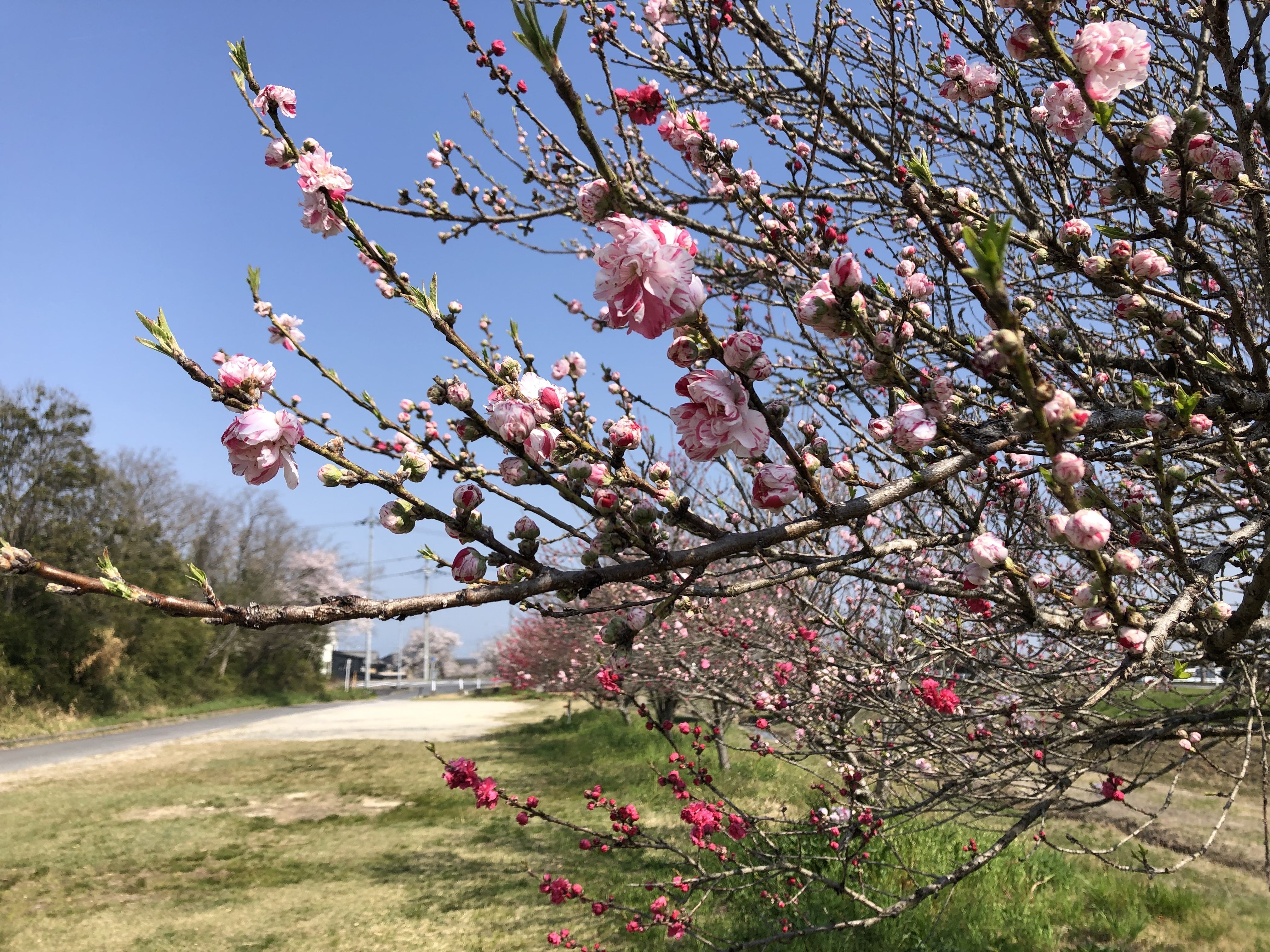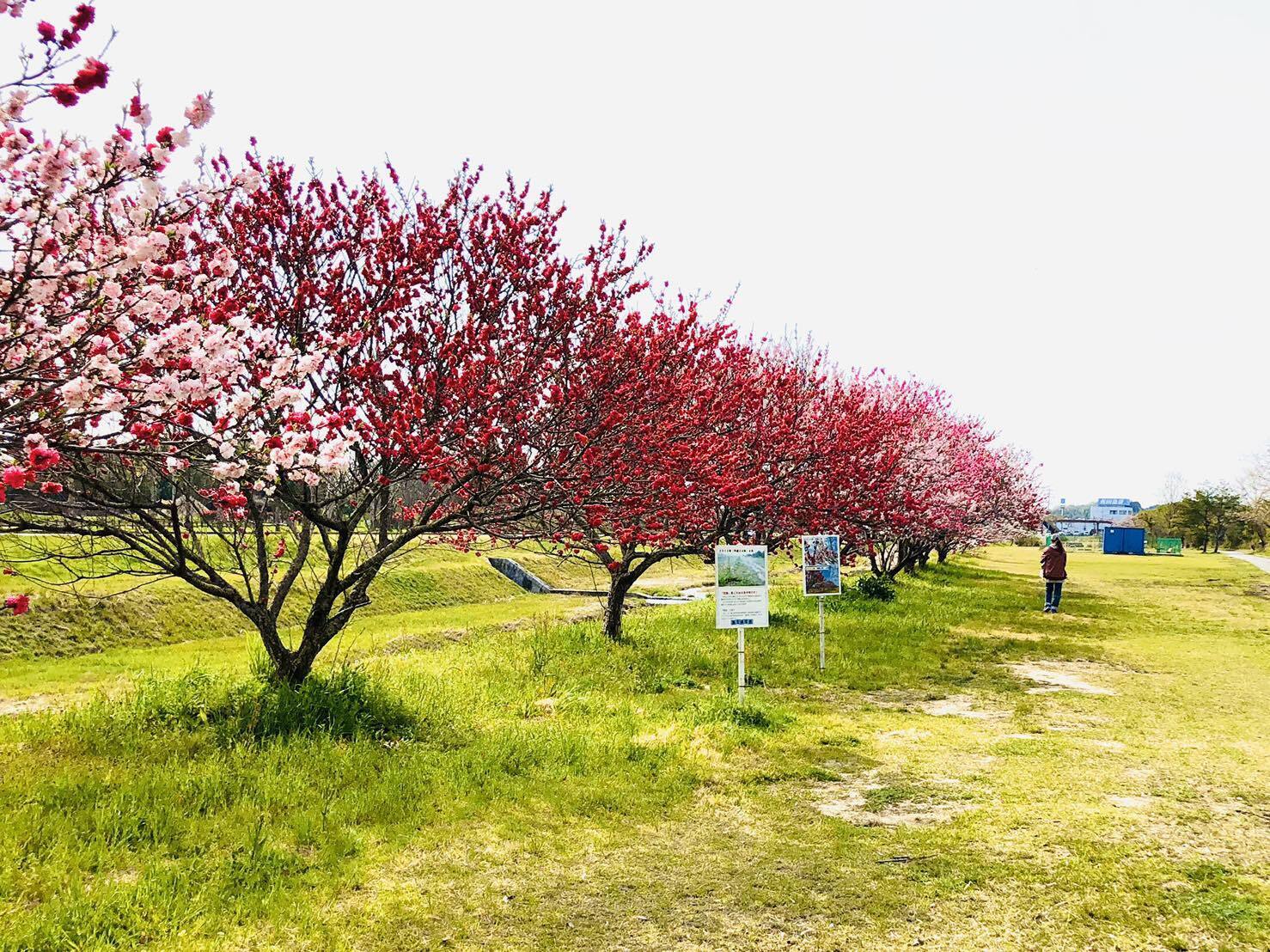 同町にある『竜王ライオンズクラブ』様のご協力により、150本を超える「花桃」の植樹・維持管理を行い、4月上旬から中旬にかけて綺麗な花を咲かせるようになりました。