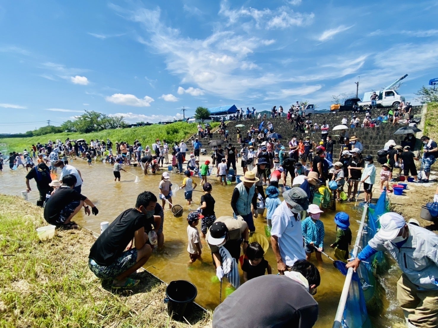 7月には「家族魚つかみ大会」を、10月には「焼き芋大会」を開催し、地元の子どもたちを通じて親御さんにこの活動の一端を担っていただくきっかけづくりをしています。