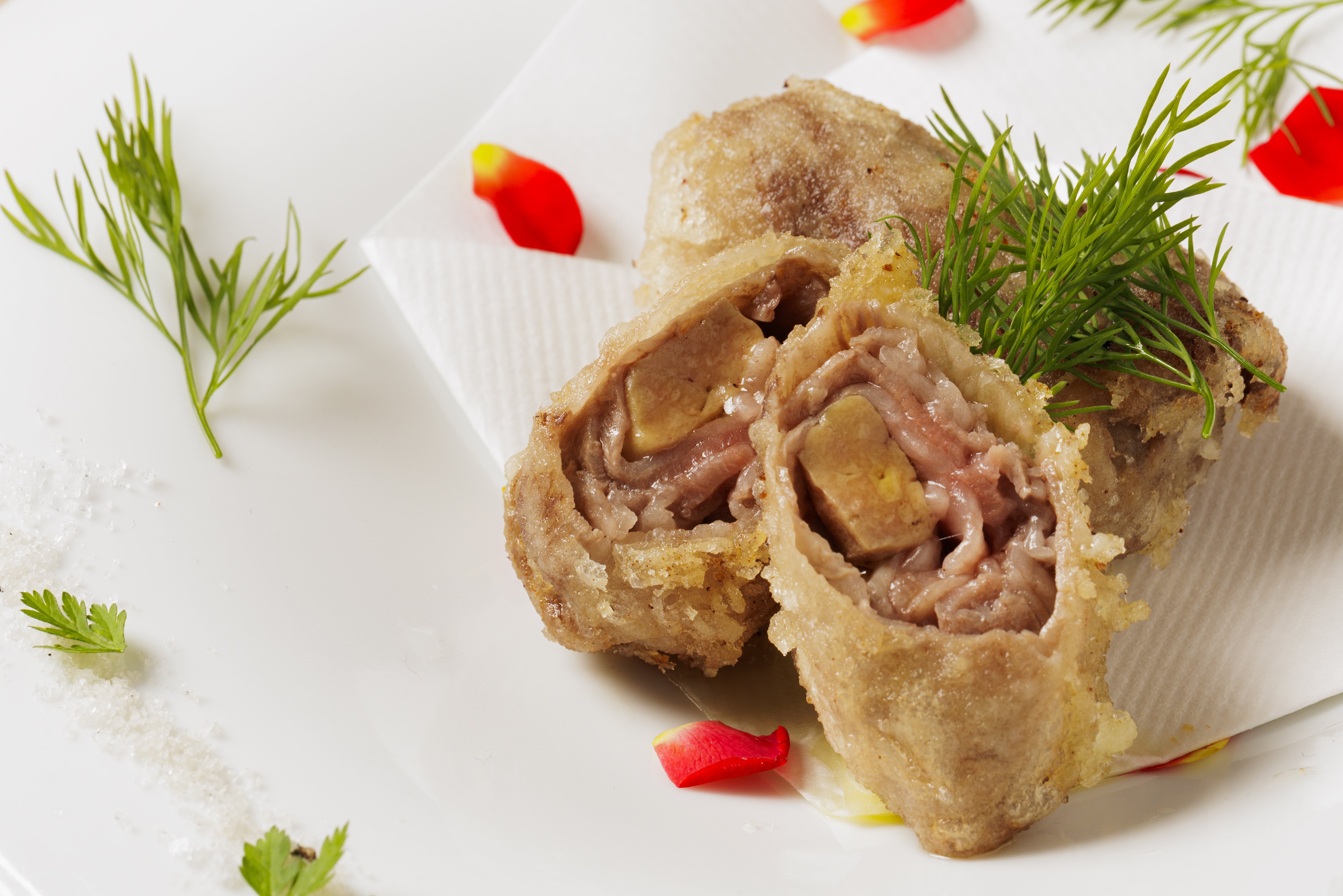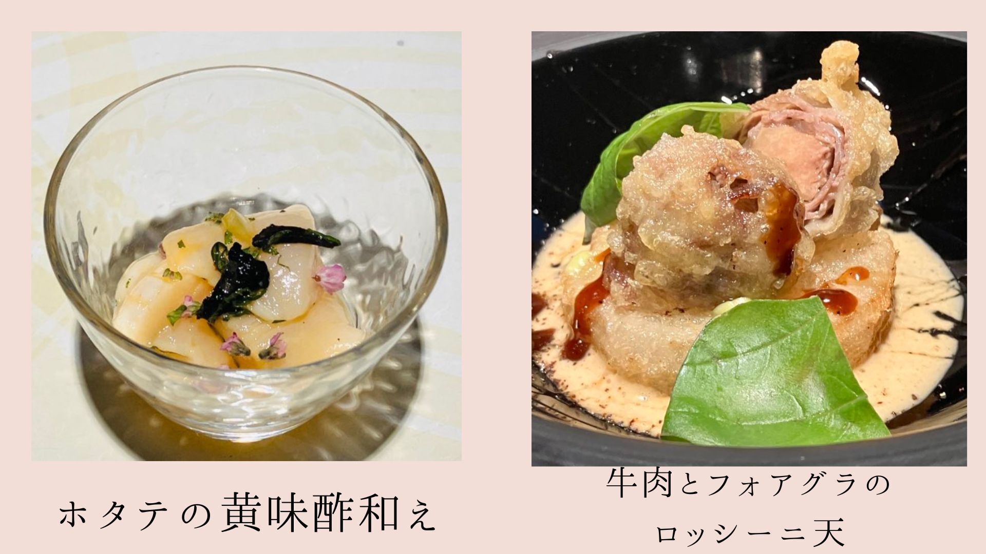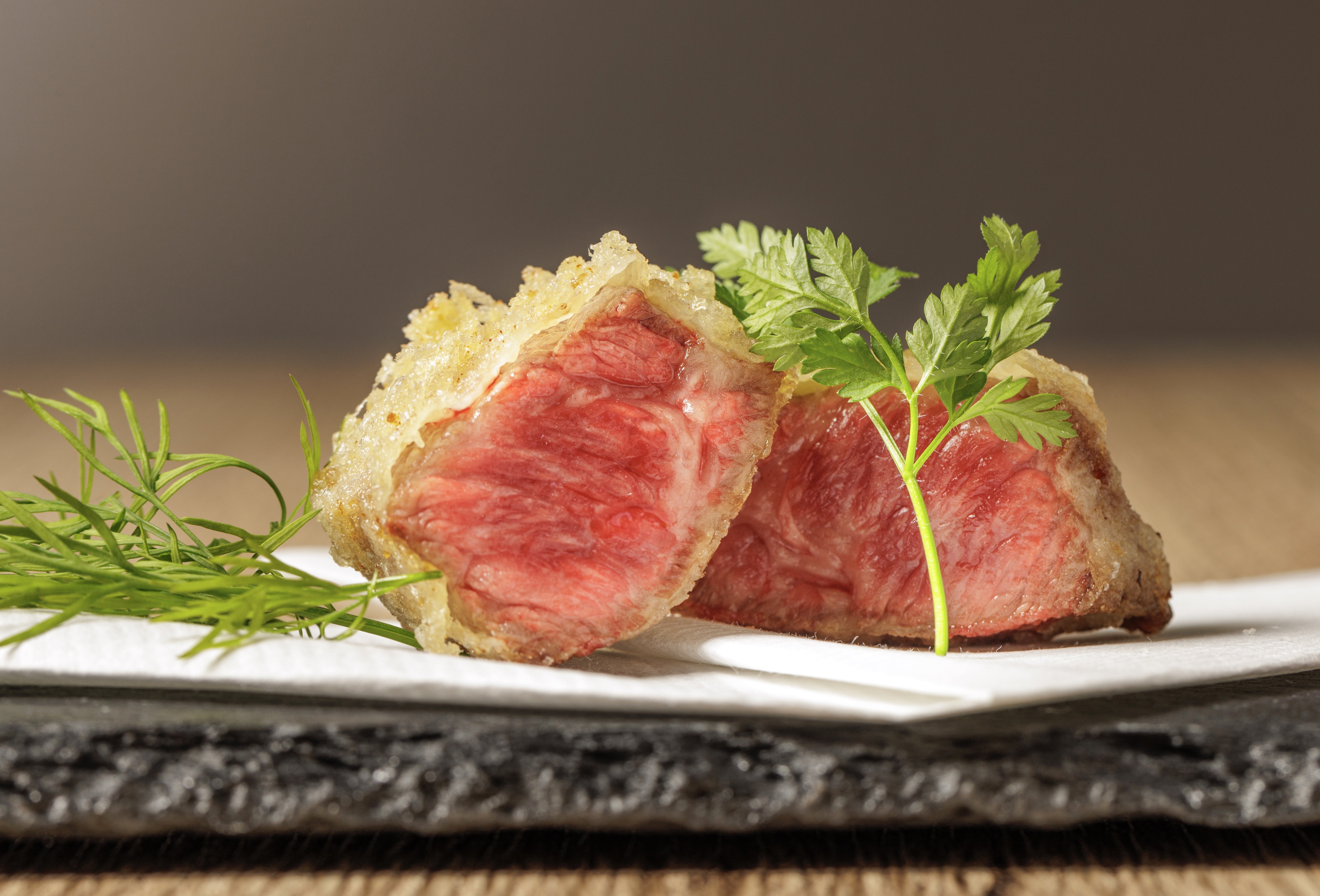 こちらは、高級食材フォアグラを牛肉で包んた創作天ぷらです。フォアグラ+牛肉の天ぷら