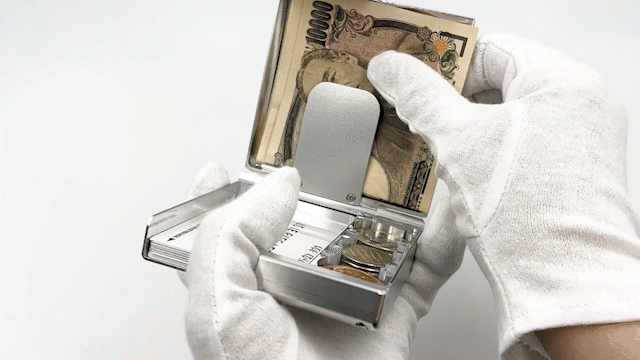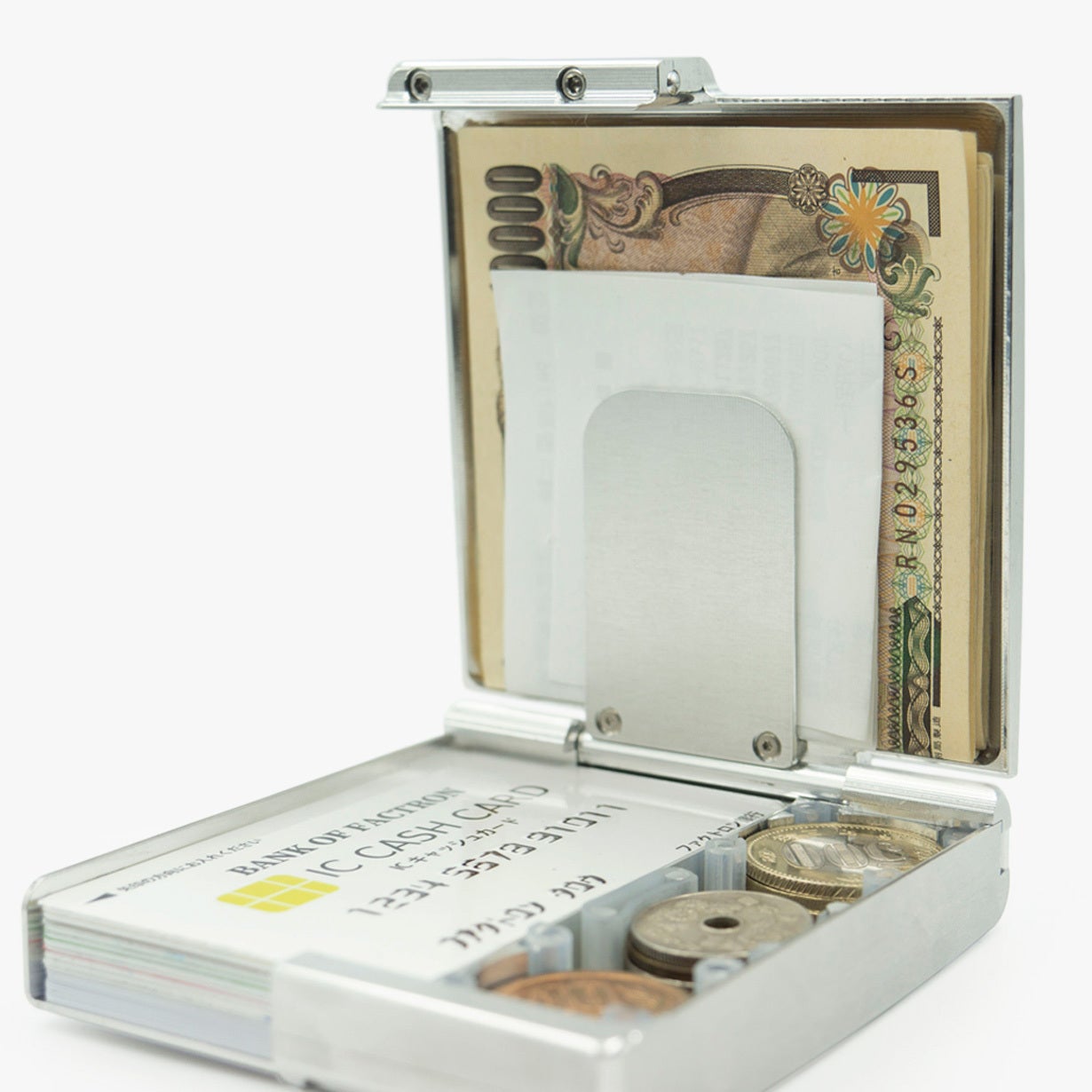 市場にある既存のメタル製クレジットカードケースは、金属板とゴムでカードを挟み込むタイプや、カードをレバーなどで押し出すタイプのものなどが主流です。マネークリップ付きの商品もありますが、それらは全てカードの収納がメインです。そこから利便性や必要性など様々な分析をし、「お札もコインも入るコンパクトなクレジットカードケース」という結論に達し、開発に着手しました。