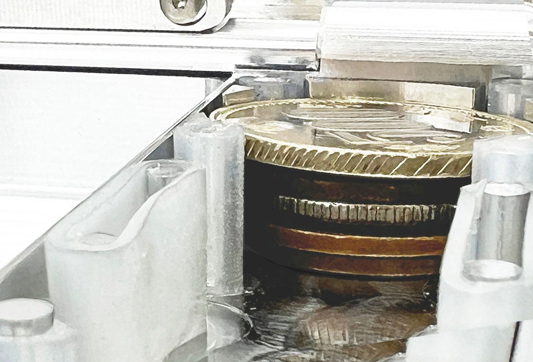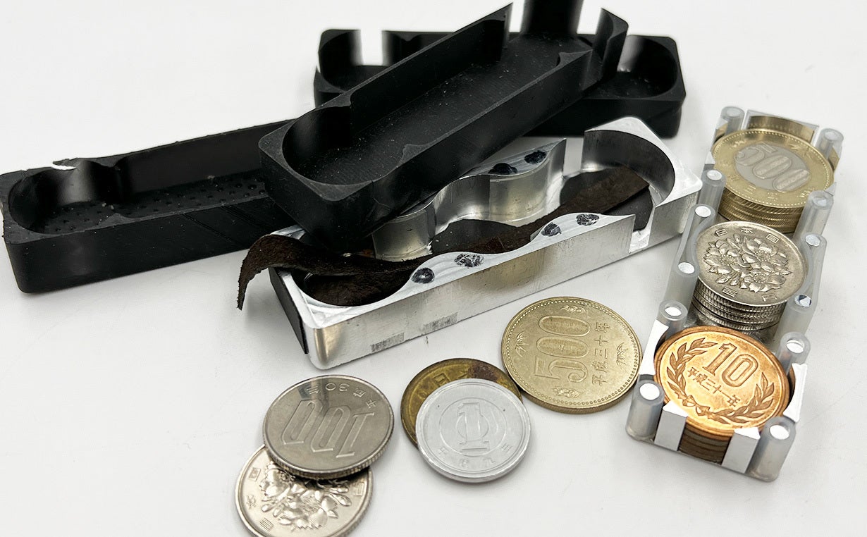 コインがカチャカチャ動かない、こぼれない、出し入れがしやすい構造を開発しました。