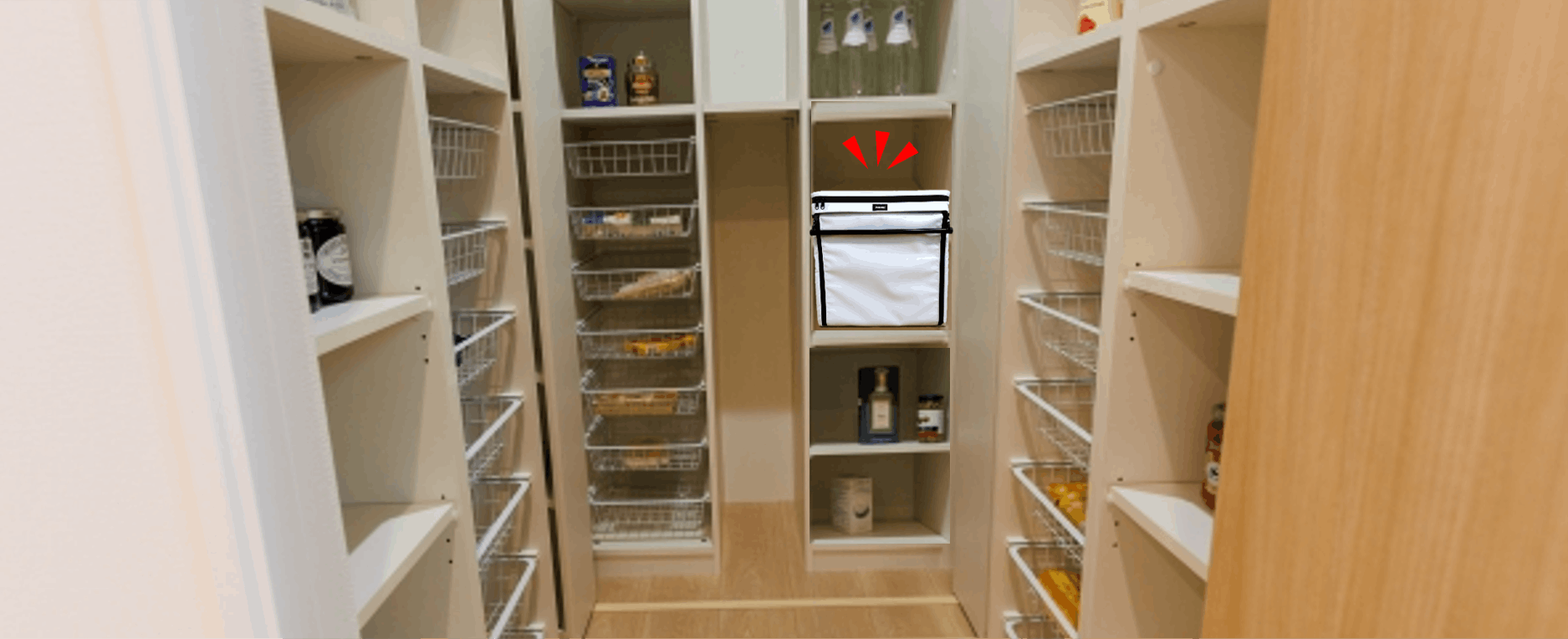 「PONPA」なら身近な場所で普段の食品を収納し、食べたら補充することで突然の避難でも賞味期限を気にせずに食べ慣れた食品を持ち出せて便利で安心です。例え棚から落ちても中身が散らばらないから素早く持ち出せ、片付けも楽です。