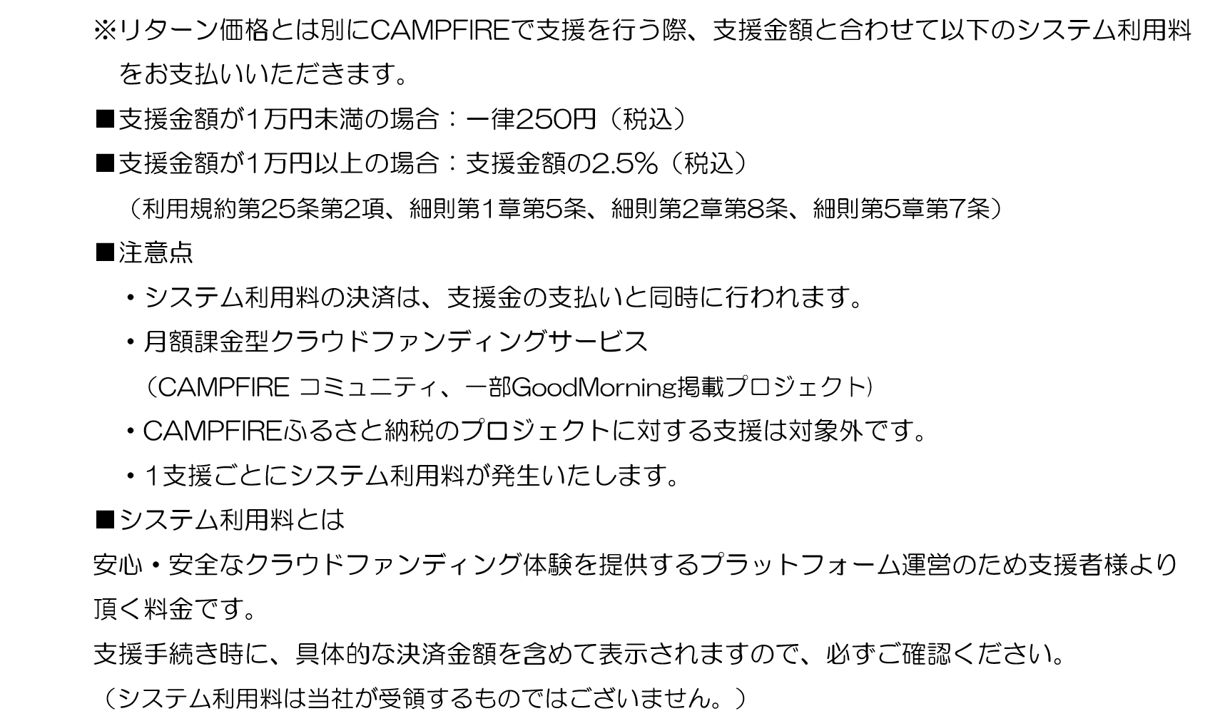 ※このプロジェクトは、All-or-Nothingで実施します。設定金額に至らなかった場合は、残念ながらプロジェクトの実施は見送られます。
