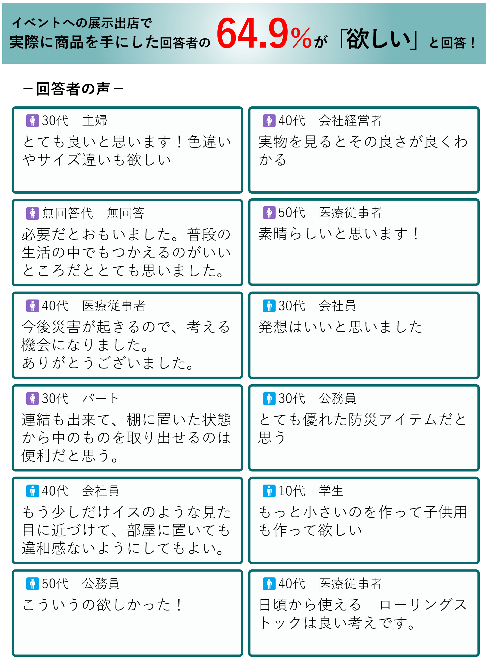 開発試作品での展示出店では、64.9%もの方が「欲しい」と回答!(「とても欲しい」を含むアンケート結果)