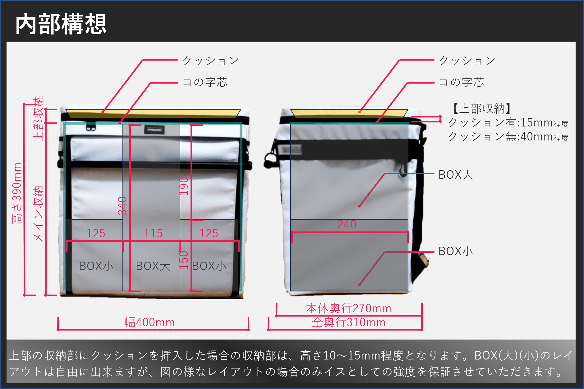 高反発クッションで収納物の凹凸を吸収して座り心地を確保