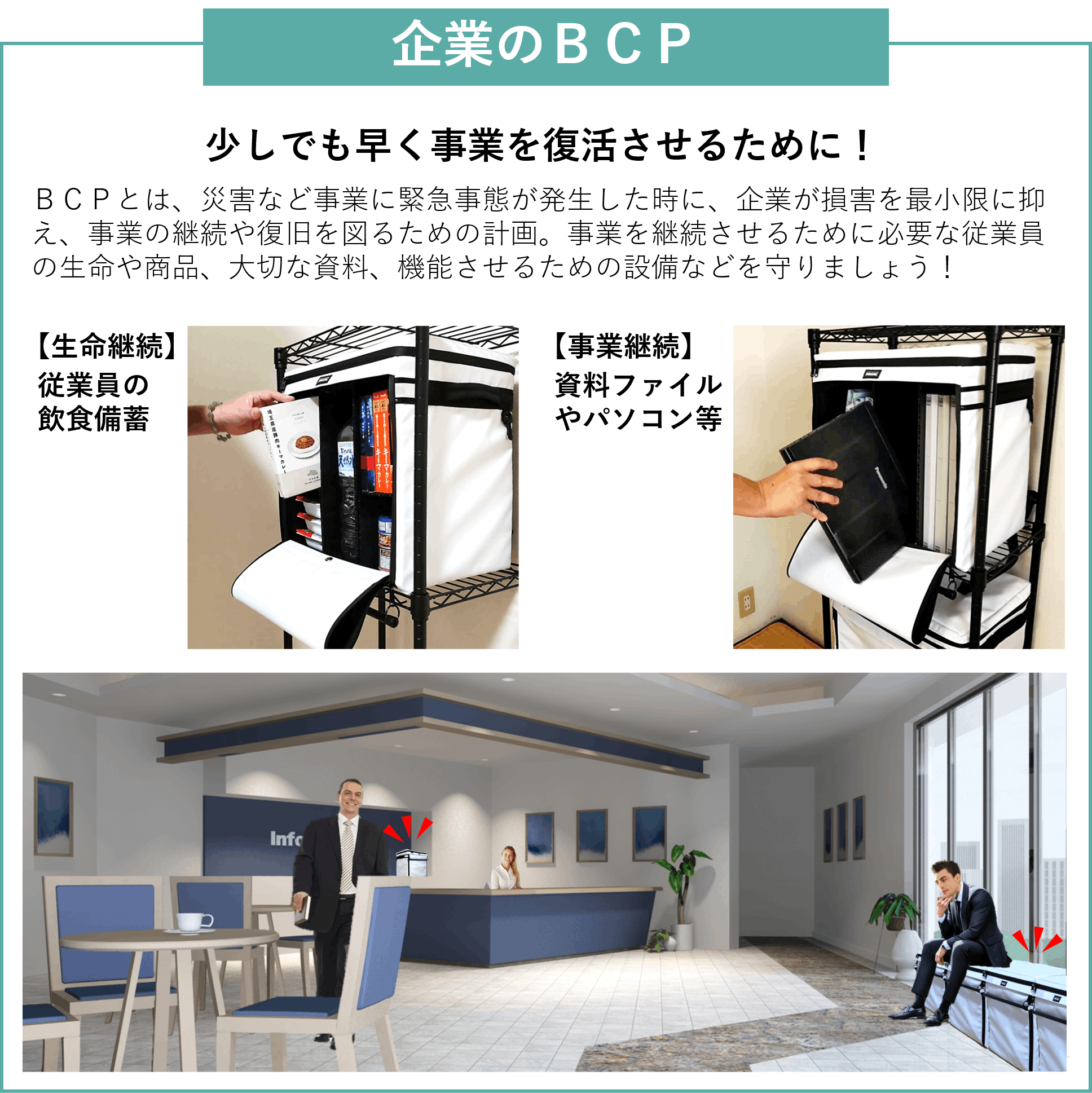 生きるための二次避難に適した、企業のBCPにも役立つ特許を取得した防災リュックです。