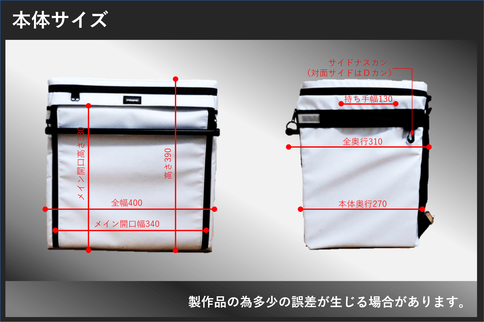 防炎機能撥水機能はもちろん、試作品計値ながら加圧試験で驚きの4.2KNを記録!子象が載れる程の強度を実現した、約34リットルの大容量です。