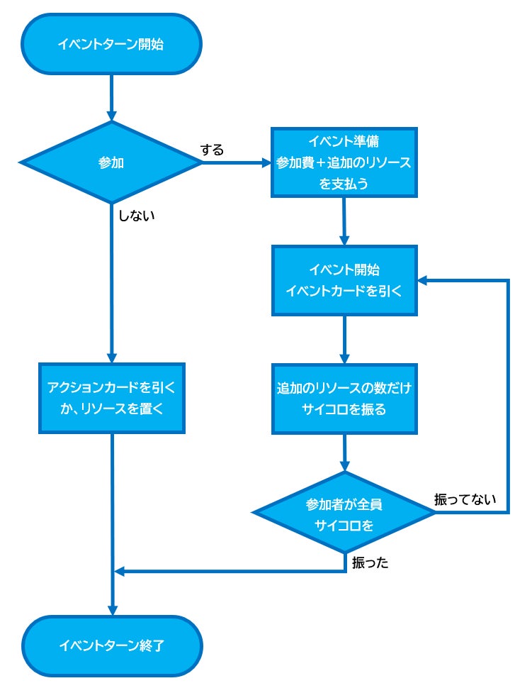 イベントは参加したプレイヤーだけで時計回りに進めます。自分の番に行うことは以下の通りです。
