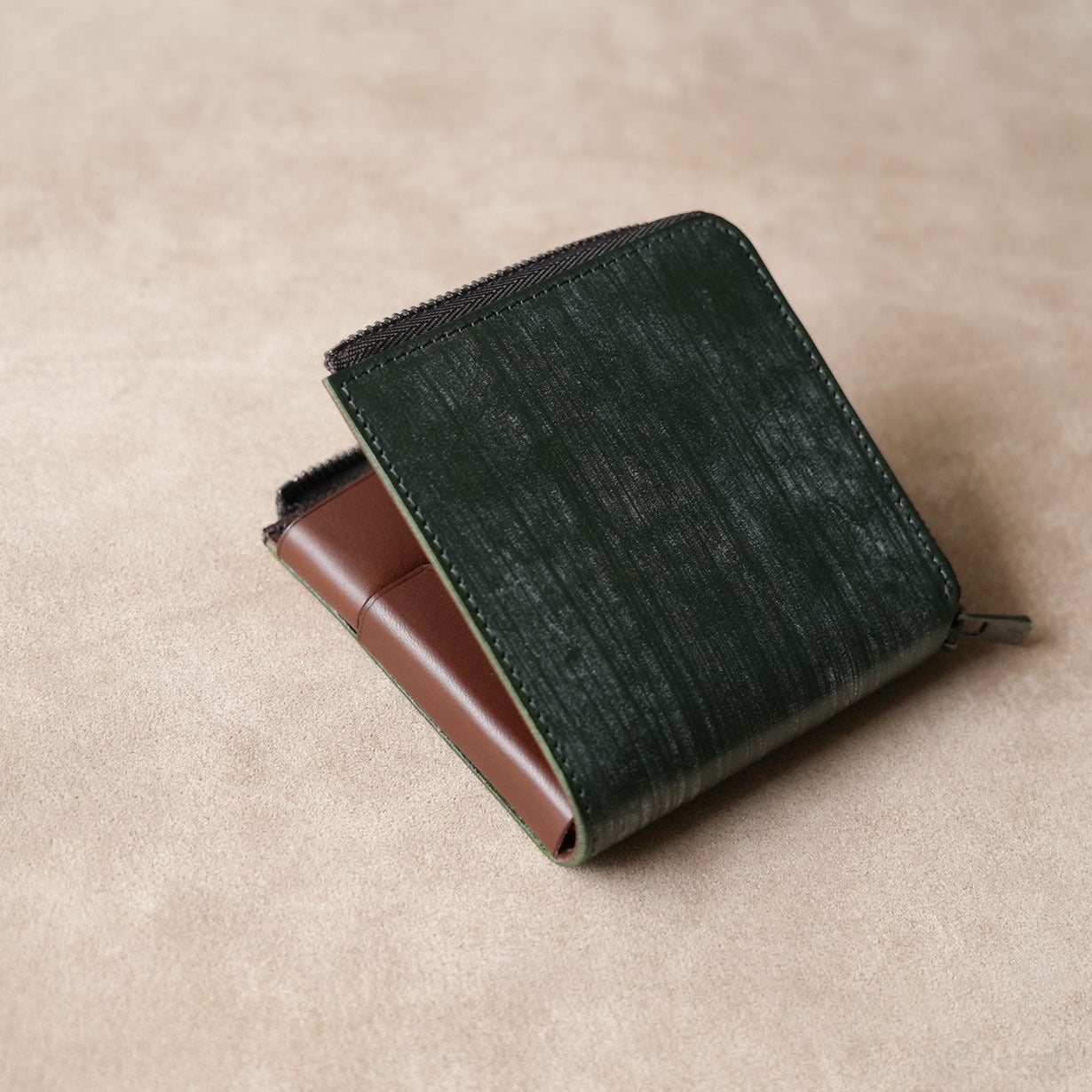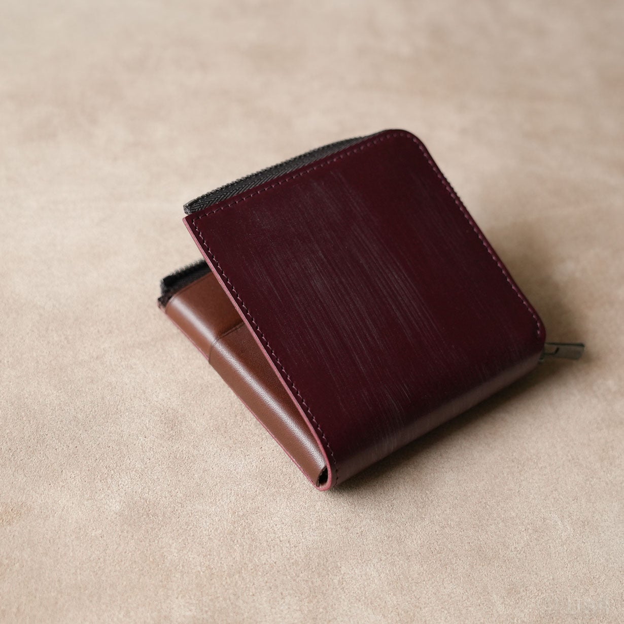 内装のダークブラウンが、さり気ないワンポイントのデザインです。