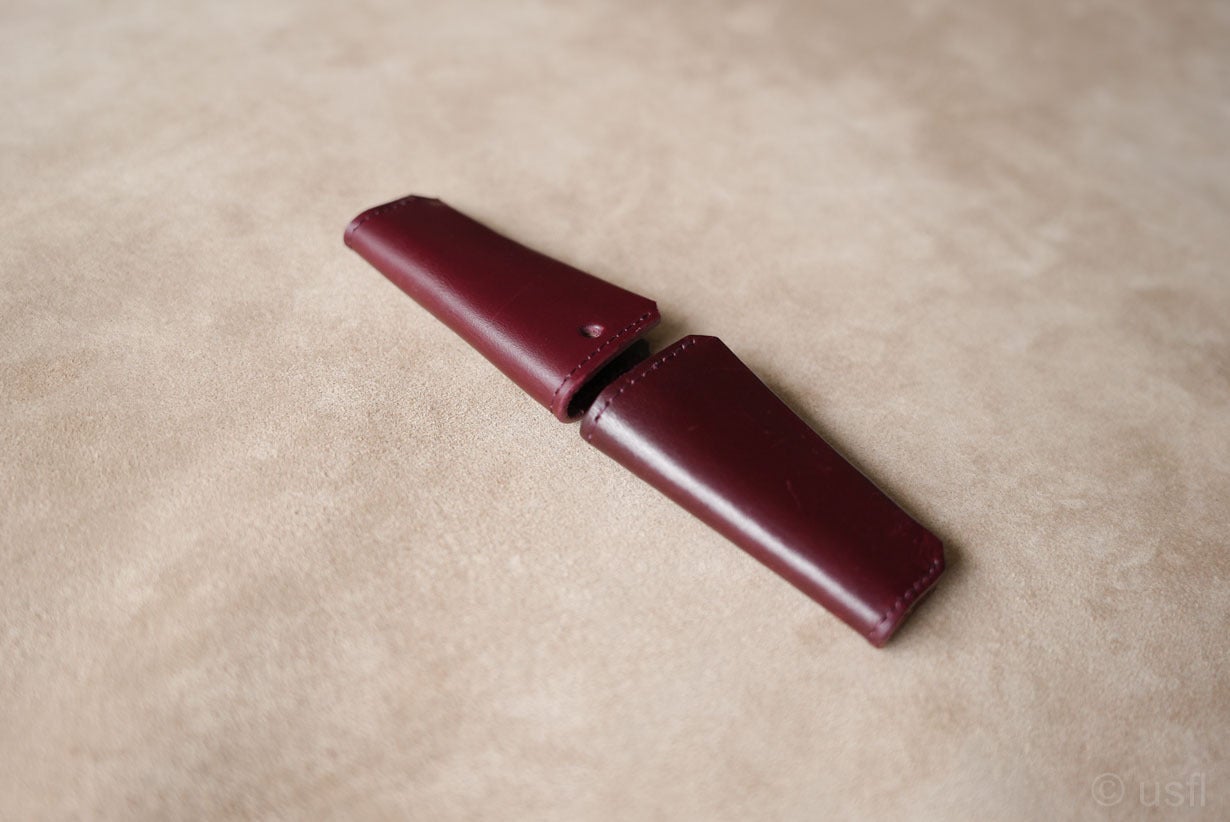 ワインのエイジング紹介です。左が未使用、右が約7ヶ月使用したspin(キーケース)です。色が濃くなり、ツヤが出てきました。深みのあるワインのように美しい表情を楽しめます。