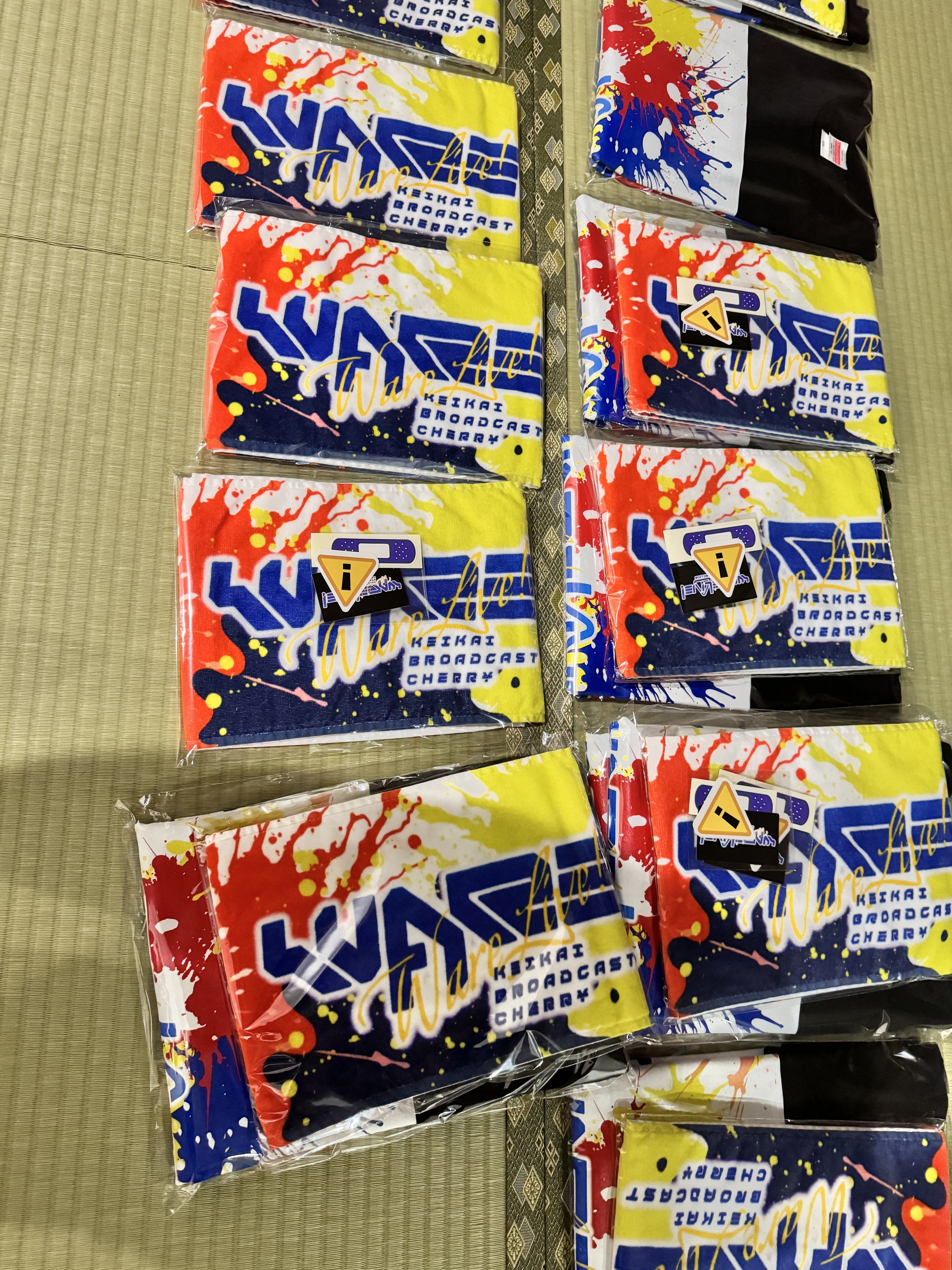 こんにちは!今回は、WARELIVE!グッズの紹介をしていきますよ!!マフラータオルさすが長いですン細くて長いので首にかけやすいTシャツ大きいシャツなので145㎝がきるとひざ上3cm丈になります。ステッカーなかなかにカッコイイ(カッコイイ)それぞれのものたちステッカーの絆創膏が思って以上に絆創膏でした。(しーるです、我が作りました)ぺんぺんが一枚一枚カットしてくれています。届くまでお待ちくださいPS:私書箱の会社からの登録完了の連絡こない。はよこい。