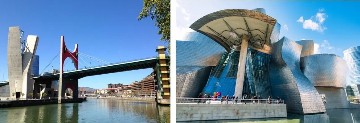 昔はバルセロナに次ぐスペイン第2の工業都市だったのですが、ニューヨークに拠点を置くグッゲンハイム美術館ができてからは、街全体にモダンな建築物が増えて、歴史も感じるおしゃれな街となっています。
