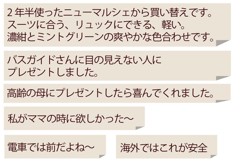 高齢やケガで杖や松葉杖を使うようになると、今までちゃんと使えていたバッグが急に不便に感じるようになります。ましてや、障碍で前が見えない状態や車いすに乗った姿勢などなどの状況で、ラクに安全に持てるバッグはあるのでしょうか?