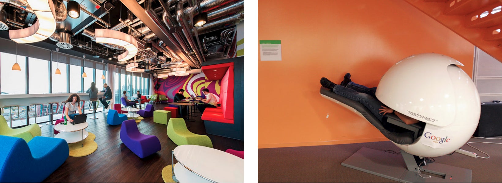 1階のコワーキングフロアはドロップイン・会議やフリースペースとして利用、また、戦略的仮眠が取れるグーグルポッドを設置します。