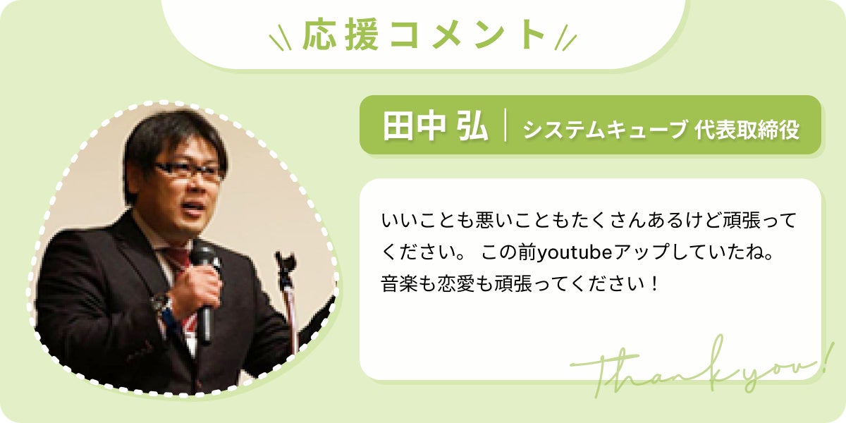 和歌山のIT企業システムキューブの田中弘社長は「頑張れそうやね!」と言い放ち、未経験の私を寛大に受け入れ、手に職がつくよう2年間色々な経験をさせてくれました。
