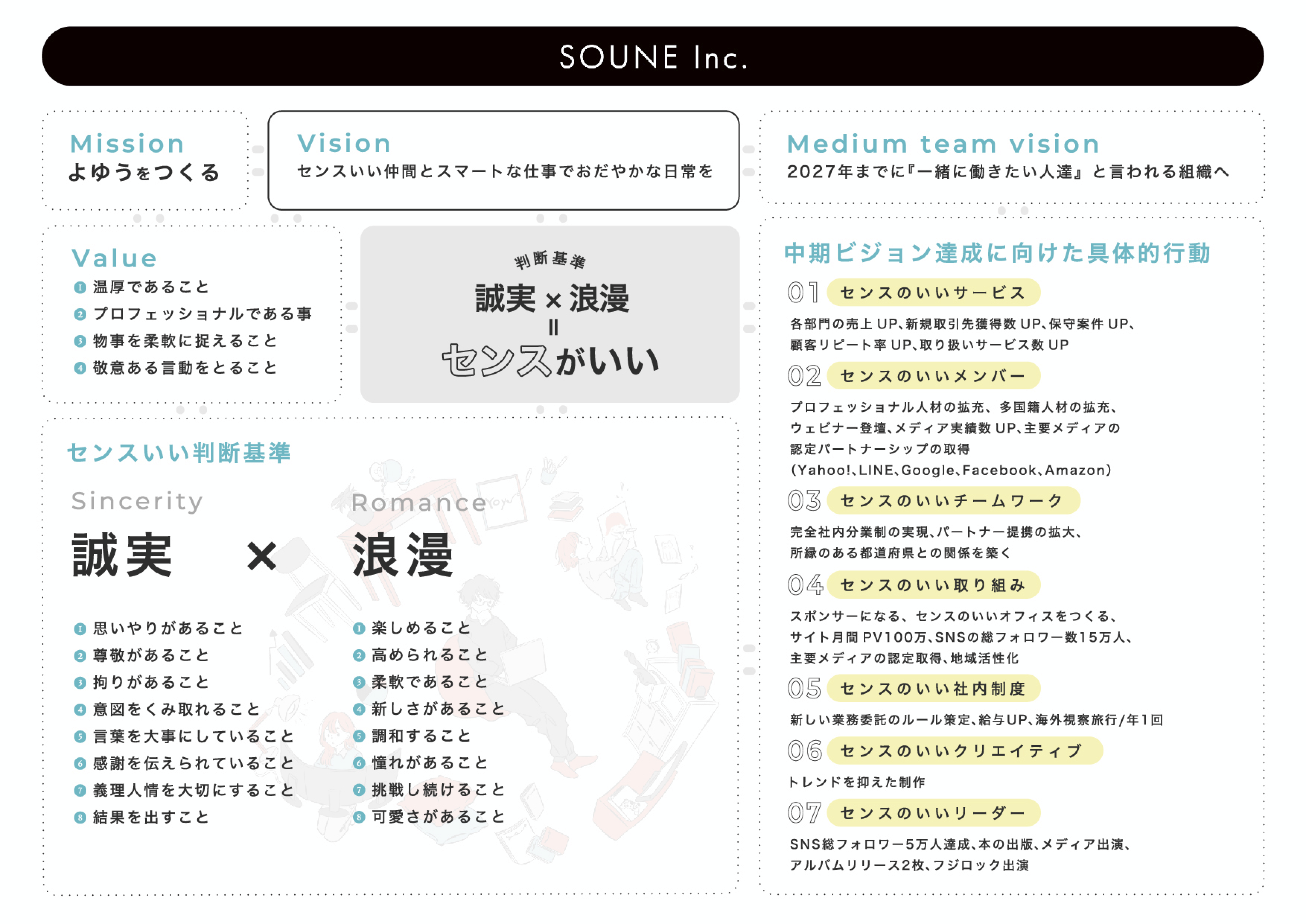 5年後の中期ビジョンを達成するための具体的な行動、判断基準は下記です。