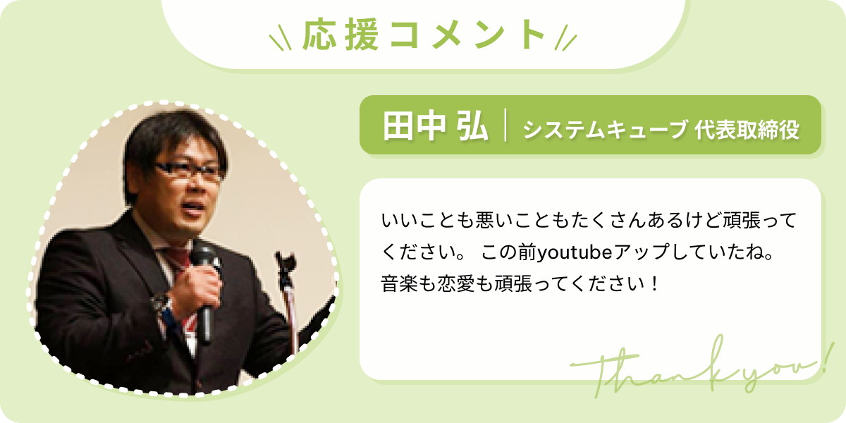 和歌山のIT企業システムキューブの田中弘社長は「頑張れそうやね!」と言い放ち、未経験の私を寛大に受け入れ、手に職がつくよう2年間色々な経験をさせてくれました。