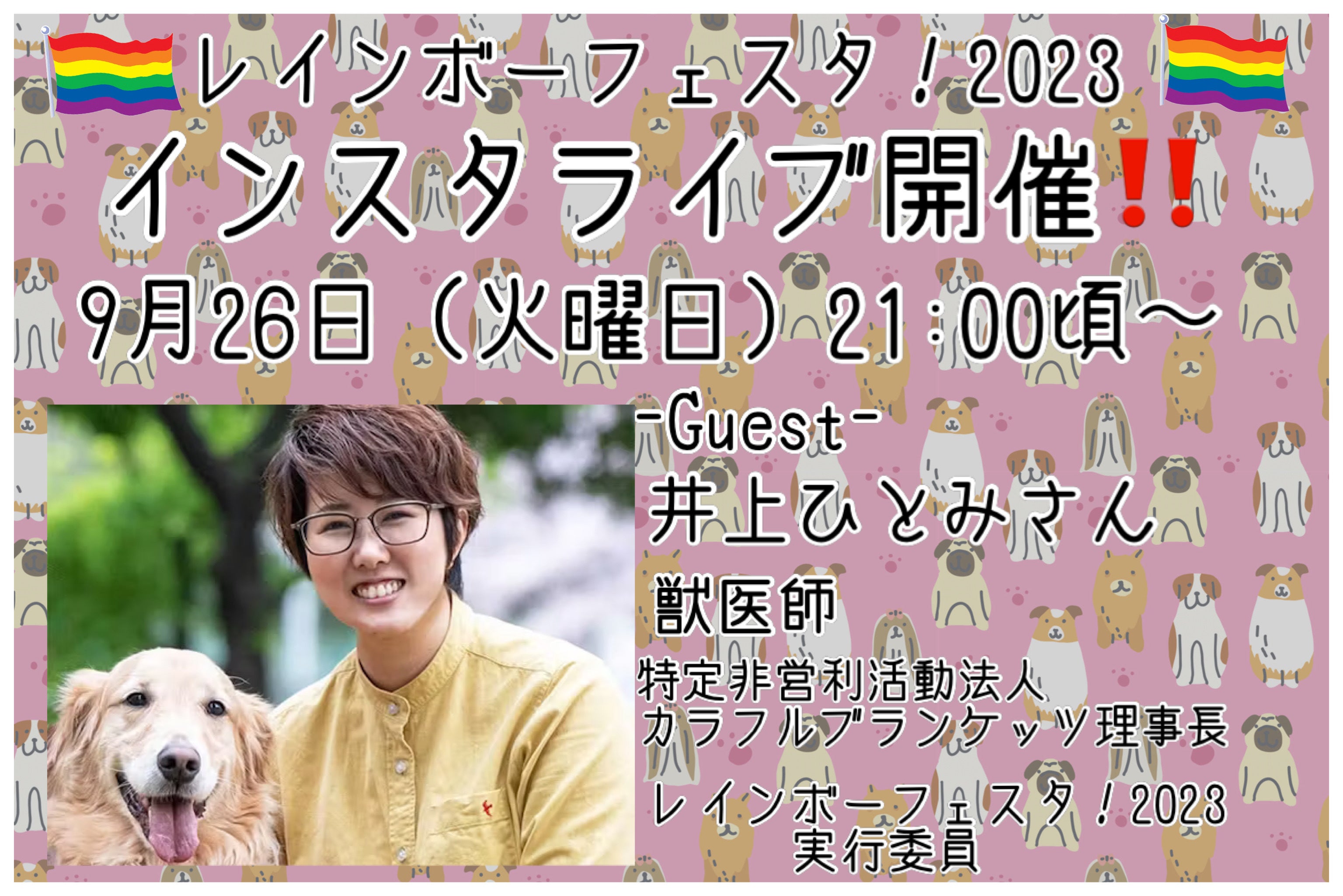 今回は井上ひとみ様(獣医師・特定非営利活動法人カラフルブランケッツ理事長・レインボーフェスタ!2023実行委員)をゲストとしてお迎えします。