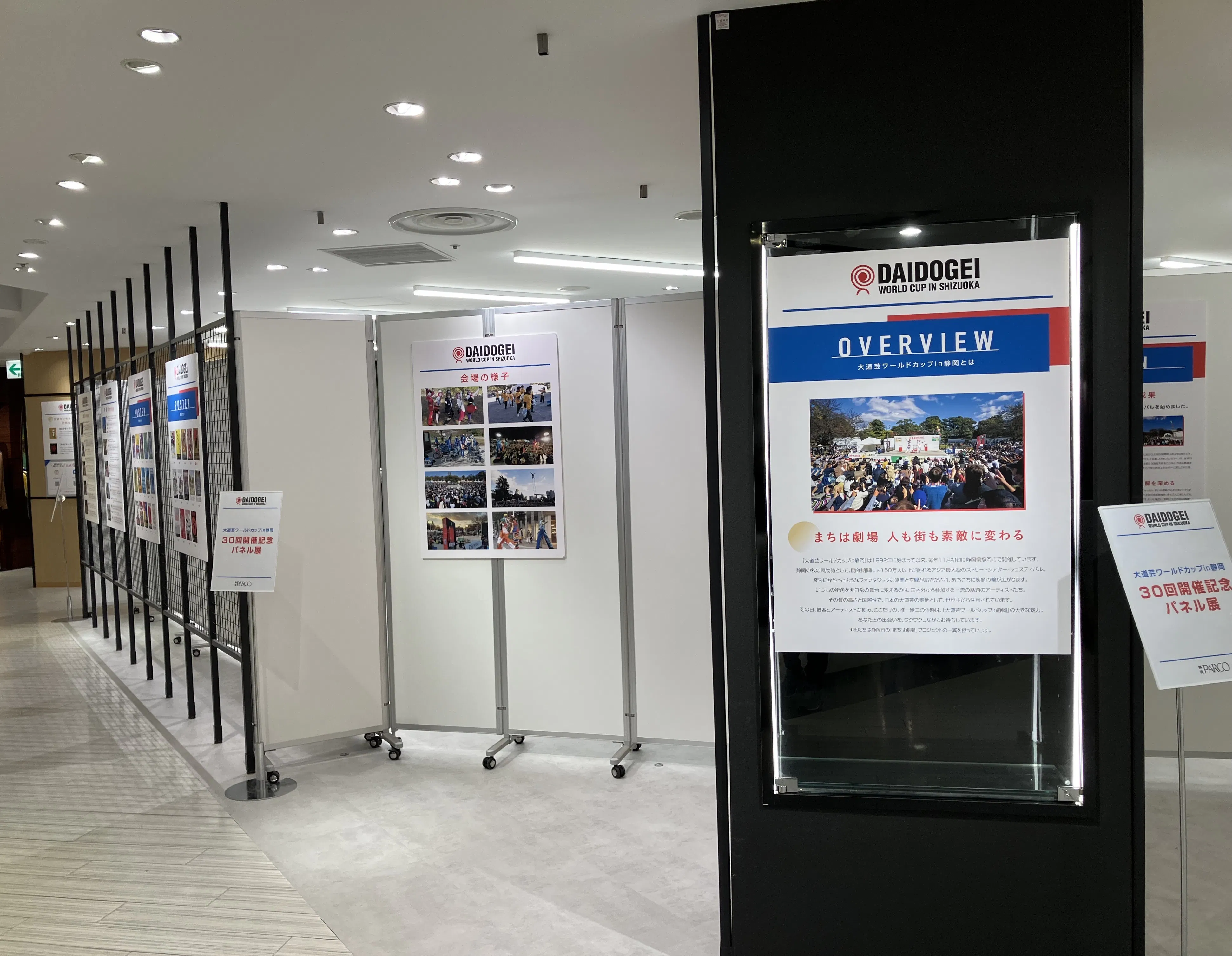 静岡PARCOの5階展示スペースにて、大道芸ワールドカップin静岡の30年の歩みやクラウドファンディングの取り組みを紹介するパネル展示を開催中です。