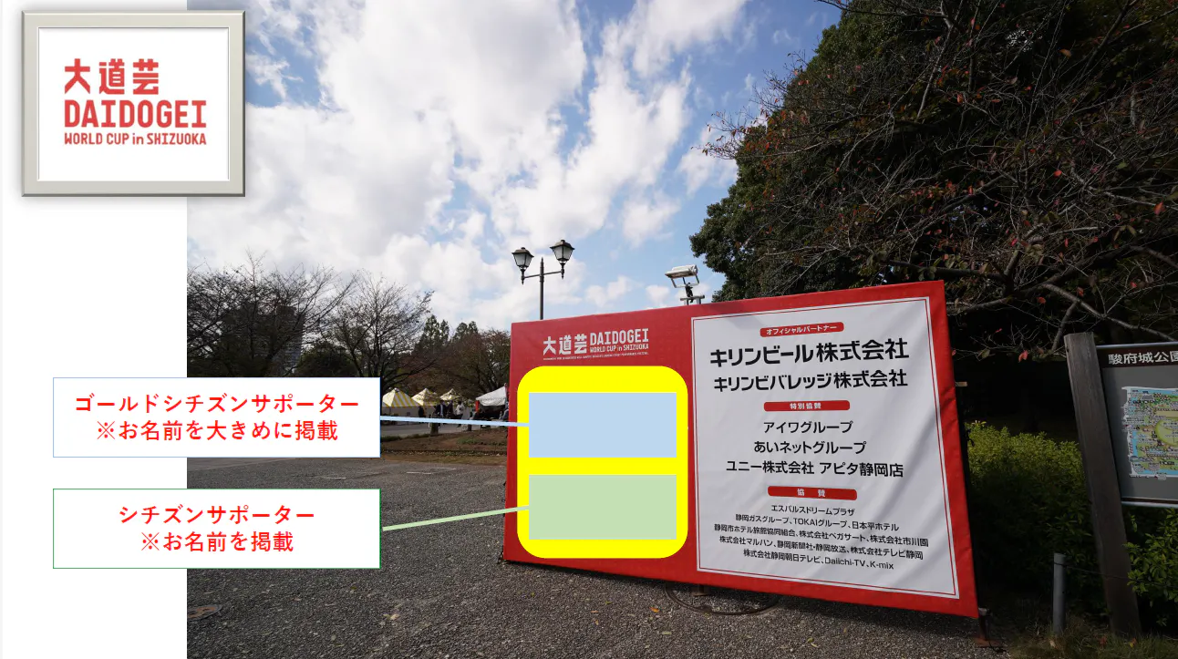 駿府城公園内に設置する支援者掲載掲示板へお名前を記載させていただきます。