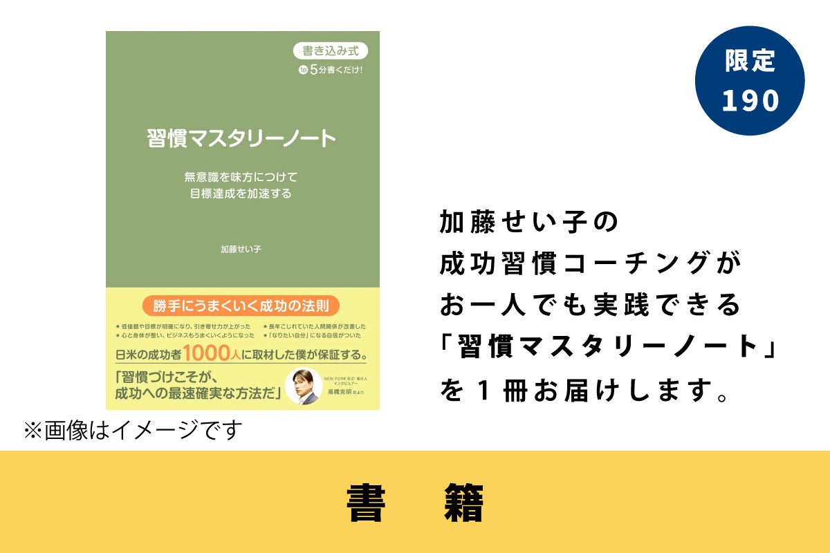 今回、この成功習慣コーチングをお一人でも実践できるように「無意識の力を味方につけて目標達成を加速する習慣マスタリーノート」として書籍化します!