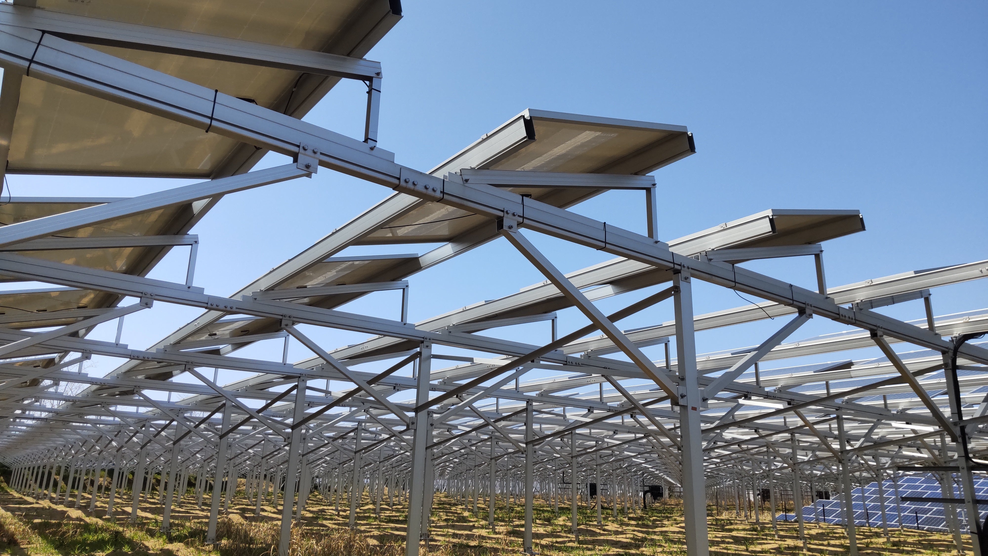 一般的なソーラーシェアリングでは、農地に太陽光パネルを置くことで、