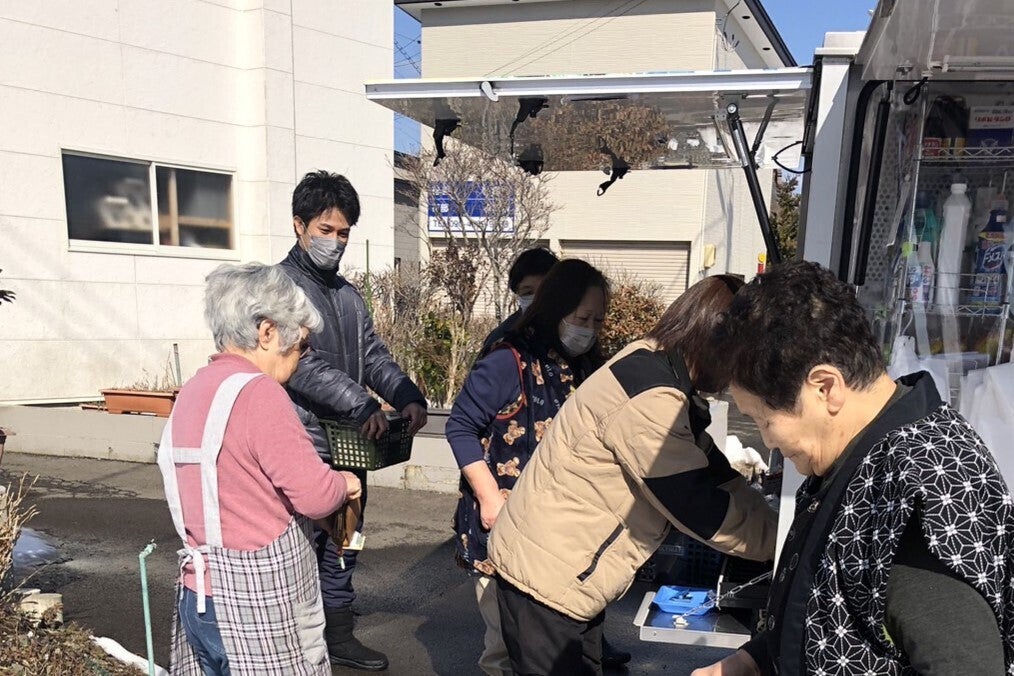 わんつCARで買い物をしながら、地域住民同士や販売員と最近の出来事や体調などを話す、コミュニケーションの場としての機能も果たしております。