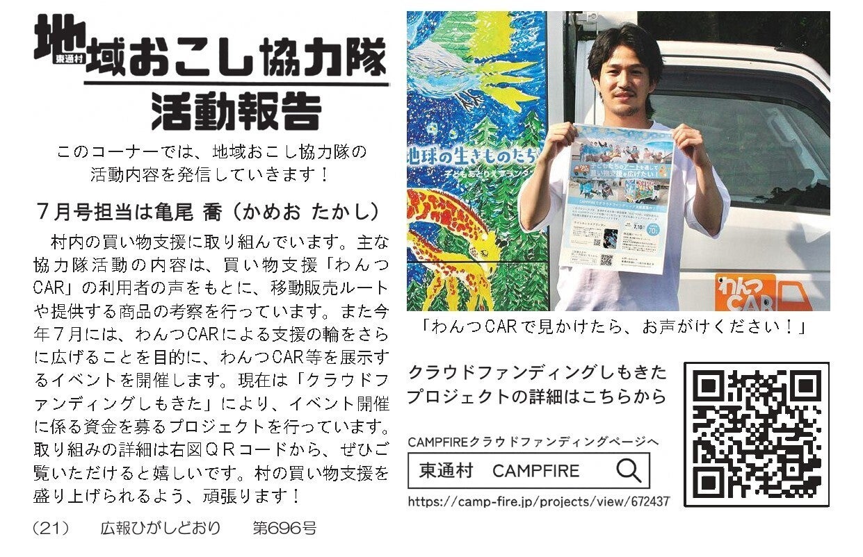 7月に入り東通村の広報誌「広報ひがしどおり」で今回のプロジェクトについて掲載していただきました!